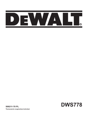 509211-70 PL Tłumaczenie oryginalnej instrukcji DWS778 Rysunek 1 d a b bb r c ii y e f g h k 0 l 30 m 50 45 n ff o q v Rysunek 2 gg hh aa s vv x y w z t uu cc tt u v j dd 2 Rysunek 4 Rysunek 3 r ii Rysunek 5 Rysunek 6 DE7023 uu Rysunek 7 Rysunek 8 jj ee b h g e uu f f Rysunek 9 Rysunek 10 ll mm e 0 kk 30 50 45 n 3 Rysunek 11 Rysunek 12 n p 45 50 i q 30 15 0 50 o Rysunek 13 0 15 30 45 nn l m Rysunek 14 z 30 0 h 50 45 oo cc q t ss qq Rysunek 16 Rysunek 15 tt rr pp h 30 0 u 50 oo 4 45 pp Rysunek 18 30 0 30 0 Rysunek 17 50 45 50 Rysunek 19 45 50 0 Rysunek 20 30 45 30 15 0 50 Rysunek 21 45 50 45 0 15 30 Rysunek 22 5 Rysunek 23 ff Rysunek 24 ff ff Rysunek 25 ff 6 PILARKA UKOSOWA DWS778 Serdeczne gratulacje! Dziękujemy za zakupienie urządzenia firmy DEWALT. Wiele lat doświadczeń, niezwykle staranne wykonanie i ciągłe innowacje sprawiły, że firma DEWALT stała się prawdziwie niezawodnym partnerem dla wszystkich użytkowników profesjonalnych narzędzi. Dane techniczne DWS778 Napięcie V 230 Typ 1 Pobór mocy W 1850 średnica tarczy tnącej mm 250 średnica otworu w tarczy tnącej mm 30 Maksymalna prędkość obrotowa tarczy tnącej obr/min 4300 Głębokość cięcia mm 85 Grubość tarczy tnącej mm 1,75 Maksymalny kąt cięcia prostopadłego w lewo i w prawo 50° Maksymalny kąt cięcia ukosowego w lewo 48° Cięcie kombinowane ukosowe 45° prostopadłe pod kątem 45° Możliwości cięcia Cięcie prostopadłe poprzeczne mm 85 x 305 Cięcie prostopadłe pod kątem 45° mm 85 x 215 Cięcie prostopadłe pod kątem 48° mm 85 x 204 Cięcie ukosowe pod kątem 45° mm 58 x 305 Cięcie ukosowe pod kątem 48° mm 54 x 305 Wymiary całkowite cm 465x615x390 Masa kg 17,2 LPA (poziom ciśnienia akustycznego) KPA (niepewność pomiaru) LWA (poziom mocy akustycznej) KWA (niepewność pomiaru) dB(A) dB(A) dB(A) dB(A) 94,2 3,0 107,2 3,0 Maks. poziom ciśnienia akustycznego Maks. niepewność pomiaru dB(A) dB(A) 115,6 3,0 Ważone częstotliwościowo całkowite przyspieszenie drgań na rękojeści (suma wektorowa trzech składowych kierunkowych) zmierzona wg normy EN 61029: Wartość skuteczna (ah)= m/s2 2,4 Niepewność pomiaru K = m/s2 1,5 Podana całkowita wartość skuteczna przyspieszenia drgań została zmierzona standardową metodą, opisaną w normie EN 61029, i dzięki temu można ją wykorzystywać do porównań z innymi narzędziami oraz do tymczasowej oceny ekspozycji drganiowej. OSTRZEŻENIE: Podana całkowita wartość skuteczna przyspieszenia drgań dotyczy podstawowego zastosowania narzędzia i może się różnić, gdy jest ono wykorzystywane w inny sposób, z innymi akcesoriami, lub niewłaściwie konserwowane. W takich sytuacjach ekspozycja drganiowa w trakcie całego okresu użytkowania maszyny może być dużo większa. Przy szacowaniu ekspozycji drganiowej trzeba też uwzględnić, jak długo w danym czasie narzędzie pozostawało wyłączone i jak długo pracowało na biegu jałowym. Ekspozycja drganiowa w trakcie całego okresu użytkowania maszyny mogłaby się wtedy okazać dużo mniejsza niż przy ciągłym użyciu. Dla ochrony użytkownika przed skutkami wibracji stosuj dodatkowe środki bezpieczeństwa, jak np. prawidłowa konserwacja narzędzi i akcesoriów, utrzymywanie ciepłych rąk, odpowiednia organizacja pracy. Amperaż bezpiecznika: Przy zasilaniu prądem o napięciu 230 V 10 A WSKAZÓWKA: Urządzenie to jest przystosowane do zasilania z sieci o maksymalnej dopuszczalnej impedancji Zmaks.= 0,25 Ω zmierzonej w skrzynce przyłączowej użytkownika. 7 Zadaniem użytkownika jest zapewnienie zasilania z sieci o takich parametrach. W razie potrzeby zasięgnij informacji o impedancji sieci we właściwym zakładzie elektroenergetycznym. Niżej podpisany jest odpowiedzialny za sporządzenie dokumentacji technicznej i składa tę deklarację w imieniu firmy DEWALT. Definicje związane z bezpieczeństwem pracy Poniżej zdefiniowano ważność poszczególnych ostrzeżeń. Prosimy o przeczytanie instrukcji i zwracanie uwagi na te symbole. NIEBEZPIECZEŃSTWO: Informuje o bezpośrednim niebezpieczeństwie. Nieprzestrzeganie tej wskazówki grozi doznaniem śmiertelnych lub ciężkich obrażeń ciała. OSTRZEŻENIE: Informuje o potencjalnie niebezpiecznej sytuacji. Nieprzestrzeganie tej wskazówki może doprowadzić do śmiertelnych lub ciężkich obrażeń ciała. UWAGA: Informuje o potencjalnie niebezpiecznej sytuacji. Nieprzestrzeganie tej wskazówki może doprowadzić do lekkich lub średnich obrażeń ciała. WSKAZÓWKA: Informuje o działaniu, które wprawdzie nie grozi doznaniem urazu, ale przy zignorowaniu może skutkować szkodami rzeczowymi. Informuje o niebezpieczeństwie porażenia prądem elektrycznym. Informuje o niebezpieczeństwie pożaru. Informuje o ostrych krawędziach. Deklaracja zgodności WE DYREKTYWA MASZYNOWA DWS778 Firma DEWALT deklaruje niniejszym, że opisane w danych technicznych narzędzie elektryczne nr DWS778 zostało wykonane zgodnie z następującymi wytycznymi i normami: 2006/42/ WE, EN 61029-1, EN 61029-2-9. Wyrób ten jest zgodne także z dyrektywą 2004/108/WE oraz 2011/65/UE. Więcej informacji na ten temat można uzyskać pod podanym niżej adresem lub w jednej z naszych filii wymienionych na końcu instrukcji obsługi. 8 Horst Großmann Wicedyrektor Działu Konstrukcyjnego DEWALT, Richard-Klinger-Straße 11, D-65510, Idstein, Niemcy 01.11.2012 Wskazówki dotyczące bezpieczeństwa OSTRZEŻENIE! Przy korzystaniu z elektronarzędzi przestrzegaj obowiązujących przepisów bhp, by zminimalizować ryzyko pożaru, porażenia prądem elektrycznym i doznania urazu ciała. Przed użyciem narzędzia przeczytaj zamieszczone niżej przepisy bezpieczeństwa pracy i dobrze zapamiętaj je na przyszłość! PRZECHOWUJ TĘ INSTRUKCJĘ, BY W RAZIE POTRZEBY MÓC Z NIEJ PONOWNIE SKORZYSTAĆ. Ogólne przepisy bezpieczeństwa 1. Utrzymuj porządek w miejscu pracy. Nieporządek grozi wypadkiem. 2. Uwzględniaj wpływy otoczenia. Nie wystawiaj elektronarzędzia n