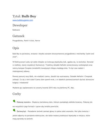 Tytuł: Bulb Boy Deweloper Gatunek Opis Cechy