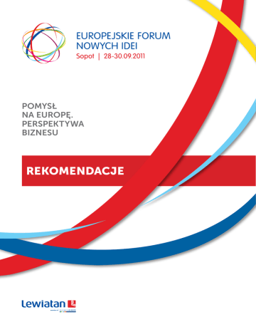 Pomysł na Europę. PERSPEKTYWA biznesu REKOMENDACJE Do władz Unii Europejskiej i rządów Państw Członkowskich UE Europejskie Forum Nowych Idei w Sopocie zakończyło się podpisaniem Deklaracji Sopockiej. 30 września 2011 roku, w imieniu uczestników obrad – liderów biznesu oraz wybitnych intelektualistów z Europy oraz innych regionów świata - przekazałam ją Przewodniczącemu Rady Europejskiej Hermanowi van Rompuy, Przewodniczącemu Parlamentu Europejskiego Jerzemu Buzkowi oraz Premierowi RP Donaldowi Tuskowi. Obiecałam przy tym, że kolejnym efektem Forum będzie pakiet rekomendacji, jakie wynikną z podsumowania i analizy pięciu sesji plenarnych i dwudziestu paneli EFNI. Deklaracja Sopocka była esencją naszych oczekiwań wobec polityków. Zawarliśmy w niej wnioski i oczekiwania adresowane zarówno do polityków, jak i ludzi biznesu. Podkreślaliśmy, że Unia Europejska to projekt, który zapewnił Europejczykom pokój i godne życie i dlatego trzeba go uratować. W tym celu potrzebne jest przyspieszenie integracji politycznej, stworzenie efektywnego systemu podejmowania decyzji, wzmocnienie unijnych instytucji oraz współodpowiedzialności Europejczyków za losy kontynentu i świata. Jako przedsiębiorcy zwracaliśmy uwagę na konieczność szybkiego dokończenia budowy jednolitego rynku, deregulacji, spójnego i silnego zarządzania gospodarczego oraz orientacji wszystkich polityk i instytucji unijnych na wzrost, zatrudnienie i konkurencyjność przedsiębiorstw. PATRONI HONOROWI EFNI Rekomendacje, które tu przedstawiamy, dotyczą wszystkich pięciu obszarów wyróżnionych w Deklaracji Sopockiej jako kluczowe dla wielkiego europejskiego projektu. Są to: Bronisław Komorowski n P rzyszłość UE – wizja, zarządzanie, instytucje, przywództwo, model społeczny n J ednolity rynek i deregulacja n S trefa euro i rząd gospodarczy n K onkurencyjność i innowacyjność n S trategia ludnościowa, wyzwania demograficzne, migracje, zagospodarowanie Prezydent Rzeczypospolitej Polskiej Herman van Rompuy Przewodniczący Rady Europejskiej niewykorzystanych potencjałów – kobiet i młodzieży oraz grupy 50+ Patronat polskiej Prezydencji 2011 europejskie forum now ych idei | Przewodniczący Parlamentu Europejskiego w w w.efni.pl Jerzy Buzek Nasza przyszłość zależy od tego, czy i na ile konsekwentnie uda nam się wprowadzić niezbędne reformy w każdej z tych sfer. Biznes już zadeklarował wsparcie w ich realizacji, ale muszą je zainicjować politycy. Dlatego też to im właśnie poddajemy ten pakiet pod rozwagę. 1 Henryka Bochniarz Prezydent Polskiej Konfederacji Pracodawców Prywatnych Lewiatan Wiceprezydent BUSINESSEUROPE EUROPEJSKIE FORUM NOWYCH IDEI 2011 DEKLARACJA SOPOCKA Europa – najwyższy czas na działanie! Pomysł na Europę. Perspektywa Biznesu Wspólnie mamy szansę stworzyć Europę naszych marzeń i możliwości. Europę opartą na większej solidarności i głębszej integracji. Unia Europejska stworzona, by zapobiegać konfliktom, zmieniła kontynent, stała się inspirującym projektem dla kilku pokoleń Europejczyków. My, obecni na EFNI, jesteśmy przekonani i przekonujmy wszystkich, że żaden europejski kraj nie jest w stanie samodzielnie sprostać wyzwaniom współczesności. Wyzwania teraźniejszości muszą stać się źródłem naszego sukcesu. Europejskie Forum Nowych Idei to międzynarodowe forum dyskusyjne środowisk biznesowych, które odbyło się w dniach 28-30 września 2011 roku w Sopocie. Spotkanie zostało zorganizowane przez Polską Konfederację Pracodawców Prywatnych Lewiatan przy współpracy BUSINESSEUROPE oraz Miasta Sopot. Do debaty o roli i przyszłości Europy oraz gospodarki europejskiej i światowej zostali zaproszeni liderzy biznesu z krajów UE, a także politycy, wybitni intelektualiści, przedstawiciele środowisk nauki i kultury. Wielki projekt wspólnej Europy pilnie potrzebuje: Przyspieszenia integracji politycznej. Bez niej dalsza integracja gospodarcza nie jest możliwa, a szczególnie utrzymanie i rozszerzanie unii walutowej, kluczowego dziś warunku integracji. Podczas pięciu sesji plenarnych oraz dwudziestu paneli i debat uczestnicy szukali rozwiązań dla najważniejszych problemów ekonomicznych i cywilizacyjnych Europy i świata. Ważnym nurtem dyskusji był kryzys projektu europejskiego. Efektywnego systemu podejmowania decyzji odpowiadającego wyzwaniom naszych czasów. W wydarzeniu wzięło udział ponad 1100 uczestników z Polski, Europy i innych kontynentów. Wśród panelistów znaleźli się m.in.: były komisarz UE Günter Verheugen, noblista Oliver E. Williamson, słynny ekonomista Nouriel Roubini, wybitny latynoamerykański ekonomista Hernando de Soto, pisarz i futurysta Peter Schwartz, była rektor Europejskiego Uniwersytetu Viadrina Gesine Schwan, Prezydent BUSINESSEUROPE Jürgen Thumann, Przewodniczący Europejskiego Komitetu Ekonomiczno-Społecznego Stafan Nilsson, Sekretarz Generalny EUROCHAMBRES Arnaldo Abruzzini, amerykański pisarz i futurysta Peter Schwartz, filozof i politolog Benjamin R. Barber. W gronie panelistów Polskę reprezentowali m.in.: Danuta Hübner, Jan Krzysztof Bielecki, Aleksander Smolar, Magdalena Środa, Michał Kleiber, Jerzy Hausner oraz prezesi największych polskich przedsiębiorstw. Wzmocnienia unijnych instytucji i ich znaczenia oraz współodpowiedzialności Europejczyków. Szybkiego dokończenia budowy jednolitego rynku przy jednoczesnej deregulacji. Spójnego i silnego zarządzania gospodarczego oraz orientacji wszystkich polityk i instytucji unijnych na wzrost, zatrudnienie i konkurencyjność przedsiębiorstw. Stworzenia efektywnego środowiska biznesowego promującego innowacyjność, konkurencyjność oraz umożliwiającego wykorzystanie potencjału Europy. Stworzenia spójnej strategii ludnościowej, w tym imigracyjnej, w odpowiedzi na wyzwania demograficzne. Lepszego wykorzystania potencjału kobiet. w w w.efni.pl europejskie forum now ych idei W