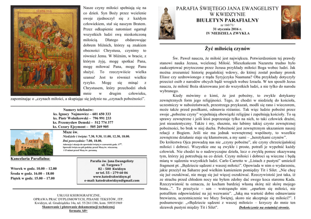 pobierz biuletyn - Parafia pw św. Jana Ewangelisty