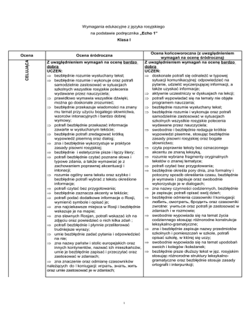 Kryteria oceniania z języka rosyjskiego dla klasy I