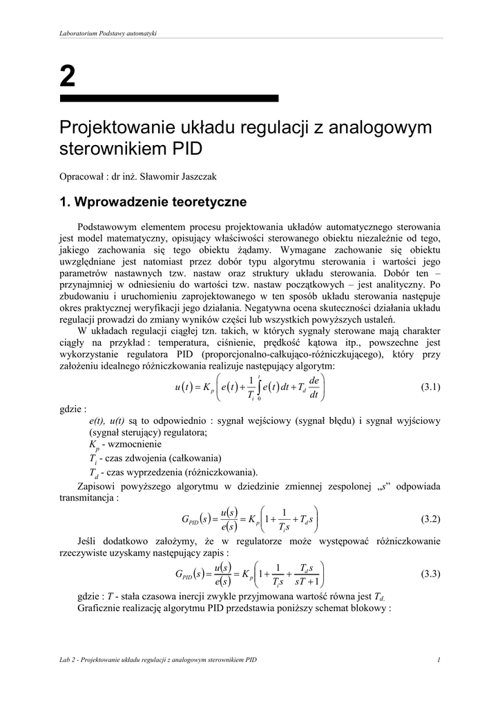 Lab 3 Projektowanie uk³adu regulacji z analogowym sterownikiem PID