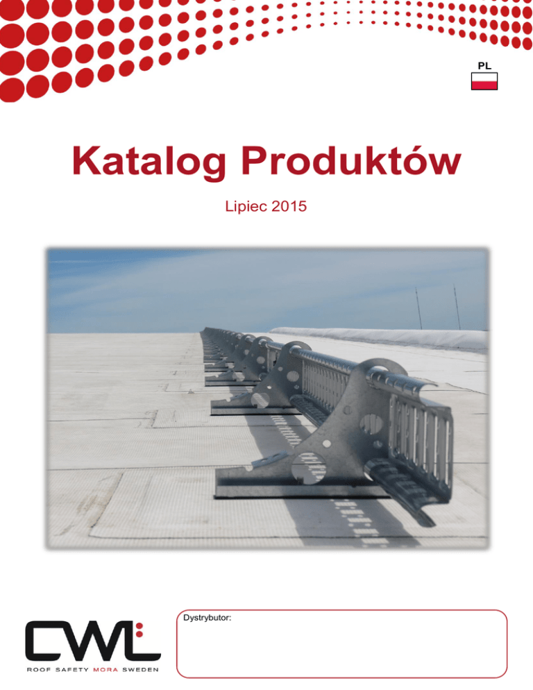 PL Katalog Produktów Lipiec 2015 Dystrybutor: COPYRIGHT © CWL 2015-06 Niniejsza publikacja jest chroniona prawem autorskim i nie może być kopiowana ani powielana bez pisemnej zgody firmy CW Lundberg AB. Zakaz dotyczy pojedynczych obrazów i tekstów, całą publikację jak również pełną część pisemną. Zastrzegamy sobie prawo do wprowadzania zmian w konstrukcji, projektów lub dokumentacji wdrożonych po powyższej dacie. Spis treści Pomost dachowy Płotek przeciwśniegowy relingowy Zapora/ grabie przeciwśniegowe Pręt przeciwlodowy Drabina dachowa Zabezpieczenie antypoślizgowe do drabiny dostawianej Stopień dachowy Ucho mocujące/ reling 1m do zakotwiczenia się liną bezpieczeństwa Barierka ochronna do wyłazu dachowego Poręcz dachy płaskie, papa/ membrana 4 5 5 5 6 7 7 8 9 9 Hak CW do mat rozchodnikowych Drabina ścienna Opaska kominowa Lakiery wyprawkowe Zamocowania Komplety pakowane w paczki Odległości między płotkami śniegowymi Wytyczne przy projektowaniu systemów zabezpieczeń dachowych Mapa kolorów Gwarancja 9 10 11 11 12 14 15 16 17 18 Wszystkie artykuły, które rozpoczynają się od cyfry 4 są ocynkowane i pokryte bezbarwnym lakierem. W przypadku innego standardowego kolory, jak poniżej: 3 – Wiśniowy RAL 3009 5 – Ceglastoczerwony RAL 8004 6 – Czarny RAL 9005 8 – Grafitowy RAL 7011 Przy wyborze innego koloru należy podać w zamówieniu numer RAL, patrz mapa kolorów strona 17. Certyfikowane systemy zabezpieczeń dachowych PpkldkfldkfkldfcdklProdukty CW certyfikację CE-lub/ Produkty CW Lundberg posiadają oraz oznaczenie symbolem P. Produkty posiadają unikalne funkcje oraz są chronione patentem oraz wzornictwem. W broszurze Dokumentacja (nr. art. CWL0062) znajdują się między innymi certyfikaty, deklaracje właściwości użytkowych, gwarancje oraz deklaracje właściwości produktów. © CWL 2015-07 3 Pomost dachowy Pomost dachowy należy wyposażyć w system liny bezpieczeństwa CWL Safety System w celu umożliwienia zakotwiczenia się liną bezpieczeństwa. System linowy umożliwia poruszanie się wzdłuż całej długości pomostu bez konieczności przepinania się karabinkiem. Pomost dachowy, z lub bez systemu liny bezpieczeństwa posiada oznaczenie CE oraz spełnia normę EN 516 klasa 2, typ B. Pomost dachowy Nr. art. Poręcz do pomostu dachowego Nr. art. Pomost dachowy 2,4 m Pomost dachowy 1,2 m Pomost dachowy narożnik 90° 2 x 2,4m 430000 430012 430094 Słupek do poręczy pomostu Zestaw śrub do 430020 Zakończenie poręczy ze śrubami 430020 430034P 430021 Rurki relingowe patrz strona 5. Wspornik Łuk, część górna do wspornika 430010 Śruby do pomostu dachowego Zestaw śrub M10 x 20 6-pak 420009P (do 1,5 szt połączeń lub 2 szt wsporników) CWL Safety System Skontaktuj się ze swoim dystrybutorem w celu uzyskania więcej informacji. Flaga z indykacją wysokości pokrywy śniegowej Flaga z indykatorem 1200 mm Zestaw śrub do 480960 5-pak 430200 4 480960 480670P 430201 Zamocowania – patrz strona 12 -13 © CWL 2015-07 Reling do kalenicy/okapu oraz płotka przeciwśniegowego Rurki relingowe Rurka relingowa 2,4 m Zestaw połączeniowy 6-pak Zestaw blokujący reling/płotek przeciwśnieg. Rurka kątowa 90° Nr. art. 420014 420012P 420010P 420026 Płotek przeciwśniegowy Płotek przeciwśniegowy 2,345 m 420033 Płotek przeciwśniegowy 1,255 m 420038 Zestaw blokujący relingi/ płotek przeciwśnieg. 420010P Zestaw śrub M10 x 20 6-pack 420009P (dla 6 szt. połączeń) Reling do kalenicy/ okapu oraz płotka przeciwśniegowego jest dopuszczony do zakotwiczenia się liną bezpieczeństwa. Opatentowane Pręt przeciwlodowy Przy montażu płotków przeciwśniegowych należy brać pod uwagę strefy śniegowe, strona 15. Flaga z indykatorem pokrywy śniegowej Pręt przeciwlodowy 50-pak Flaga z indykatorem 1200 mm Zestaw wkrętów do 480960 5-pak 420053P 480960 480670P Przy montażu płotków przeciwśniegowych, należy brać pod uwagę obciążenia śniegowe, patrz strona 15. Grabie przeciwśniegowe Dachy blaszane zatrzaskowe Hak-CWL do dachówek 50 szt. Dachy blaszane zatrzaskowe 420210 450030P Grabie przeciwśniegowe 1,290 m Zamocowanie narąbkowe do grabi Zestaw śrub M10 x 20 6-pak Zestaw połączeniowy do drabiny (zestaw umożliwiający łączenia pod kątem) Nr. art. 450030P Nr. art. 420210 410193 420009P 470018P Blacha trapezowa i dachówkopodobna Wspornik do grabi przeciwśniegowych Uszczelka EPDM do 420007 Zestaw wkrętów do 420007 7-pak Relingi patrz powyżej. 420007 410189 410024P Papa, membrana, dachówka bitumiczna Wspornik zapora przed zsuwaniem się śniegu Uszczelka EPDM do 420007 Zestaw śrub do 420007 5-pak Relingi patrz powyżej. 410193 420007 420007 410189 420170P Flaga z indykacją grubości pokrywy śniegowej Flaga z identyfikatorem 1200 mm Zestaw wkrętów do 480960 5-pak 480960 480670P Pręt przeciwlodowy 420053 © CWL 2015-07 420052 Nr. art. Pręt przeciwlodowy 50-pak 420053 (do montażu na płotku przeciwśniegowym lub relingu) Pręt przeciwlodowy z wkrętami do montażu w dolinie blachy, 50-pak 420052 (montaż jedynie na blachach trapezowych). Dostępny w kolorze szarym, ceglastoczerwonym oraz czarnym. Zamocowania – patrz strona 13-14 5 Drabina dachowa Wymagania funkjonalne Kąt nachylenia dachu 0° - 12° Pomost dachowy na spadku Kąt nachylenia dachu 8° - 33° Drabina dachowa Kąt nachylenia dachu powyżej 33° Drabina stalowa Drabinę dachową można montować na dachach pochyłych zamiast stopni dachowych. Drabina dachowa Nr. art. 470002 470003 470018P 420009P Drabina dachowa 1,2 m Drabina dachowa 2,4 m Zestaw połączeniowy Zestaw śrub M10 x 20 6-pak (do 3 szt. wsporników) Poręcz do pomostu dachowego Słupek poręczy do pomostu Zestaw śrub do 430020 Zestaw adaptacyjny do relingu/drabiny Zakończenie poręczy ze śrubami 430020 430034P 470200P 430021 Zabezpieczenie antypoślizgowe do drabiny dostawianej Nr. art. Zabezpieczenie antypoślizgowe do drabiny 470110 (do montażu na drabinie dachowej) Ze