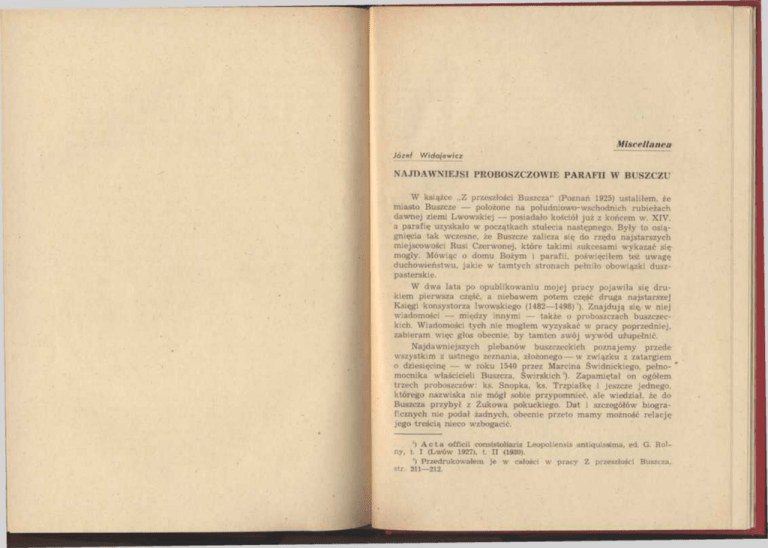 Miscellanea NAJDAWNIEJSI PROBOSZCZOWIE PARAFII W