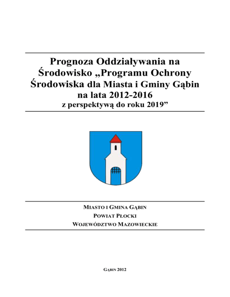 Prognoza Oddziaływania na Środowisko „Programu Ochrony Środowiska dla Miasta i Gminy Gąbin na lata 2012-2016 z perspektywą do roku 2019” MIASTO I GMINA GĄBIN POWIAT PŁOCKI WOJEWÓDZTWO MAZOWIECKIE GĄBIN 2012 Prognoza Oddziaływania na Środowisko „Programu ochrony środowiska dla Miasta i Gminy Gąbin na lata 2012-2016 z perspektywą do roku 2019” SPIS TREŚCI 1. WPROWADZENIE ................................................................................................................ 5 1.1. STAN FORMALNO-PRAWNY I CEL SPORZĄDZENIA PROGNOZY........................................ 5 1.2. ZAKRES MERYTORYCZNY PROGNOZY ODDZIAŁYWANIA PROGRAMU OCHRONY ŚRODOWISKA ........................................................................................................................... 6 2. ZASTOSOWANE METODY I WYKORZYSTANE MATERIAŁY ................................................. 8 3. INFORMACJE O ZAWARTOŚCI, GŁÓWNYCH CELACH PROGRAMU OCHRONY ŚRODOWISKA I POWIĄZANIU GO Z INNYMI DOKUMENTAMI ................................................... 10 3.1. PRZEDMIOT I GŁÓWNE CELE PROGRAMU .................................................................... 10 POWIĄZANIE PROGRAMU Z DOKUMENTAMI SZCZEBLA LOKALNEGO, POWIATOWEGO, WOJEWÓDZKIEGO I KRAJOWEGO ............................................................................................ 12 3.2. 4. CHARAKTERYSTYKA ŚRODOWISKA MIASTA I GMINY GĄBIN ........................................ 22 4.1. CHARAKTERYSTYKA OGÓLNA GMINY ........................................................................ 22 4.1.1. POŁOŻENIA ADMINISTRACYJNE I GEOGRAFICZNE ................................................ 22 4.1.2. UKSZTAŁTOWANIE POWIERZCHNI, GEOMORFOLOGIA .......................................... 23 4.1.3. WARUNKI KLIMATYCZNE .................................................................................... 25 4.1.4. ANALIZA ZAGOSPODAROWANIA PRZESTRZENNEGO GMINY................................. 26 STAN ŚRODOWISKA NA OBSZARACH OBJĘTYCH POTENCJALNYM ZNACZĄCYM ODDZIAŁYWANIEM................................................................................................................. 29 4.2. 4.2.1. WODY POWIERZCHNIOWE ................................................................................... 29 4.2.2. POWIETRZE.......................................................................................................... 38 4.2.3. HAŁAS ................................................................................................................. 49 4.2.4. PROMIENIOWANIE ELEKTROMAGNETYCZNE ........................................................ 52 4.2.5. POWAŻNE AWARIE I ZAGROŻENIA NATURALNE ................................................... 54 4.2.6. OCHRONA PRZYRODY I KRAJOBRAZU .................................................................. 59 4.2.7. GLEBY ................................................................................................................. 61 4.2.8. SUROWCE MINERALNE......................................................................................... 65 4.3. 5. POTENCJALNE ZMIANY ŚRODOWISKA W PRZYPADKU BRAKU REALIZACJI PROGRAMU 66 PRZEWIDYWANE ZNACZĄCE ODDZIAŁYWANIA PROGRAMU NA POSZCZEGÓLNE KOMPONENTY ŚRODOWISKA.................................................................................................... 67 5.1. WPROWADZENIE......................................................................................................... 67 ODDZIAŁYWANIE NA ŚRODOWISKO POSZCZEGÓLNYCH ZADAŃ PRZEWIDZIANYCH DO REALIZACJI W RAMACH PROGRAMU ....................................................................................... 69 5.2. WESTMOR CONSULTING 2 Prognoza Oddziaływania na Środowisko „Programu ochrony środowiska dla Miasta i Gminy Gąbin na lata 2012-2016 z perspektywą do roku 2019” 5.2.1. OCHRONA WÓD ................................................................................................... 70 5.2.2. OCHRONA POWIETRZA......................................................................................... 72 5.2.3. OCHRONA PRZED HAŁASEM ................................................................................. 75 5.2.4. OCHRONA PRZED PROMIENIOWANIEM ELEKTROMAGNETYCZNYM ....................... 78 5.2.5. OCHRONA PRZED POWAŻNYMI AWARIAMI I ZAGROŻENIAMI NATURALNYMI ....... 81 5.2.6. OCHRONA PRZYRODY I KRAJOBRAZU .................................................................. 84 5.2.7. OCHRONA POWIERZCHNI ZIEMI I GLEB PRZED DEGRADACJĄ ................................ 86 5.2.8. OCHRONA ZASOBÓW KOPALIN............................................................................. 88 ODDZIAŁYWANIA BEZPOŚREDNIE, POŚREDNIE, WTÓRNE, SKUMULOWANE, KRÓTKOTERMINOWE, ŚREDNIOTERMINOWE I DŁUGOTERMINOWE, STAŁE I CHWILOWE ORAZ POZYTYWNE I NEGATYWNE PRZEDSIĘWZIĘĆ PROGRAMU NA ŚRODOWISKO NATURALNE .... 89 5.2.9. 5.3. 5.3.1. WODY PODZIEMNE .............................................................................................. 92 5.3.2. WODY POWIERZCHNIOWE ................................................................................... 92 5.3.3. POWIETRZE ATMOSFERYCZNE ............................................................................. 93 5.3.4. KLIMAT AKUSTYCZNY ......................................................................................... 93 5.3.5. POWIERZCHNIA ZIEMI I GLEBA............................................................................. 94 5.3.6. GOSPODARKA ODPADAMI .................................................................................... 95 5.3.7. DZIEDZICTWO KULTUROWE ................................................................................. 97 5.3.8. ZDROWIE ............................................................................................................. 97 5.4. 6. ODDZIAŁYWANIA NA ETAPIE REALIZACJI INWESTYCJI – ETAP BUDOWY ...................... 91 ODDZIAŁYWANIA 