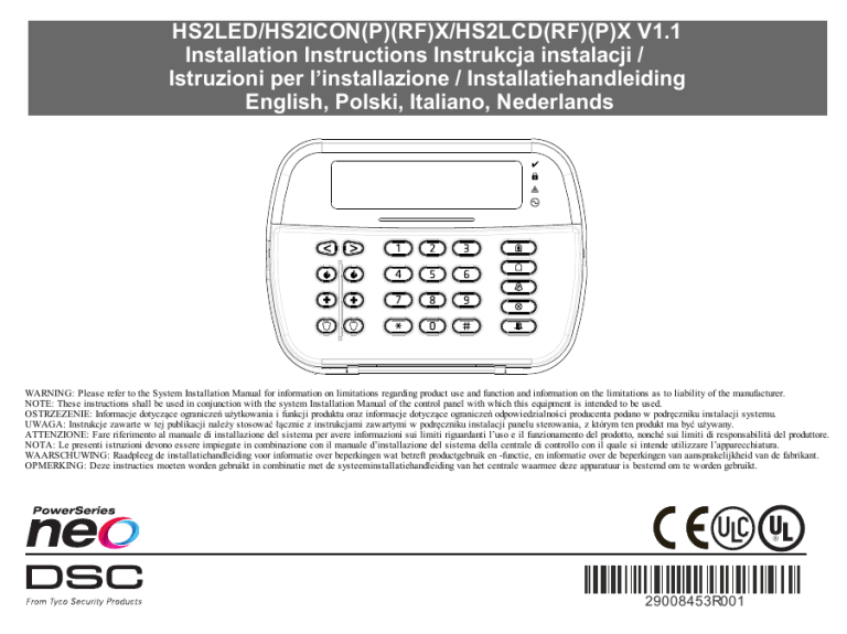 WARNING: Please refer to the System Installation Manual for information on limitations regarding product use and function and information on the limitations as to liability of the manufacturer.