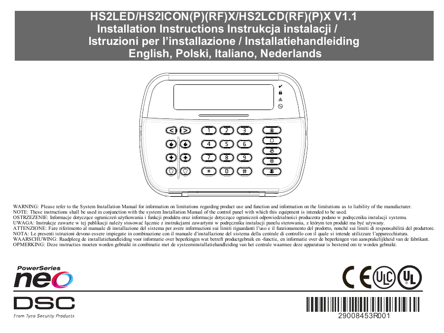 The HS2LED/HS2ICN(P)(RF)x/HS2LCD(RF)(P)x keypads are