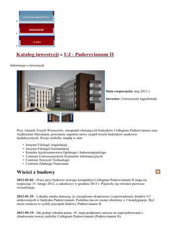 Katalog inwestycji » UJ - Paderevianum II Wieści z budowy