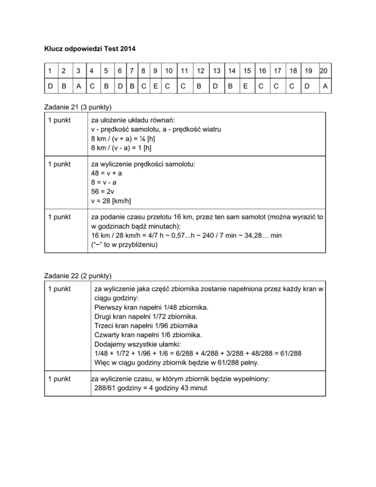 Klucz odpowiedzi Test 2014 1 2 3 4 5 6 7 8 9 10 11 12 13 14 15 16