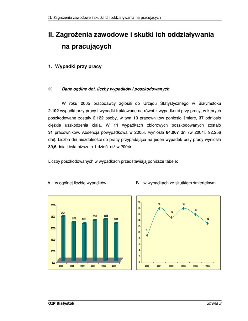 II. Zagrożenia zawodowe i skutki ich oddziaływania na pracujących