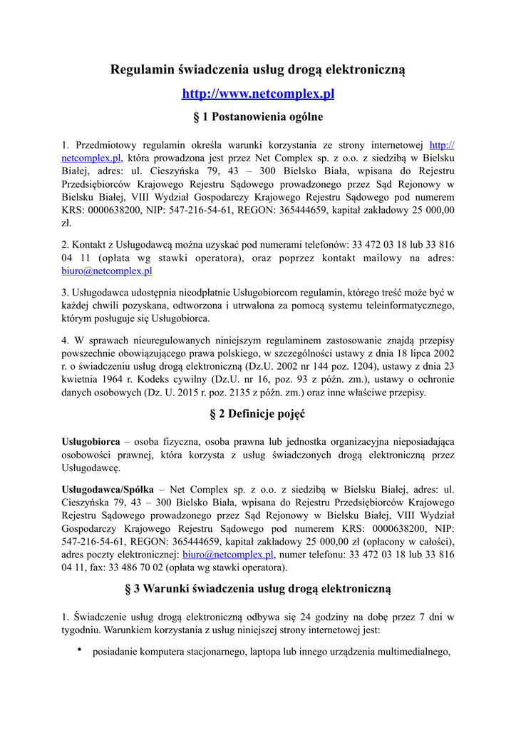 Regulamin świadczenia usług drogą elektroniczną_netcomplex
