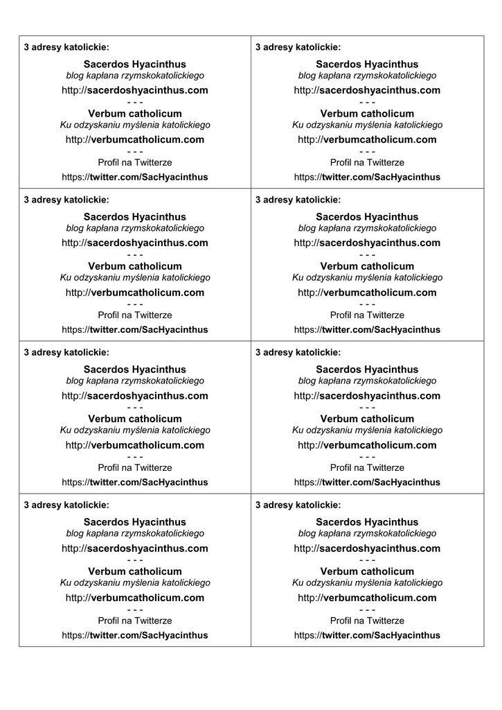 3 adresy katolickie: 3 adresy katolickie: Sacerdos Hyacinthus Sacerdos Hyacinthus blog kapłana rzymskokatolickiego blog kapłana rzymskokatolickiego http://sacerdoshyacinthus.com --Verbum catholicum http://sacerdoshyacinthus.com --Verbum catholicum Ku odzyskaniu myślenia katolickiego Ku odzyskaniu myślenia katolickiego http://verbumcatholicum.com --- http://verbumcatholicum.com --- Profil na Twitterze Profil na Twitterze https://twitter.com/SacHyacinthus https://twitter.com/SacHyacinthus 3 adresy katolickie: 3 adresy katolickie: Sacerdos Hyacinthus Sacerdos Hyacinthus blog kapłana rzymskokatolickiego blog kapłana rzymskokatolickiego http://sacerdoshyacinthus.com --Verbum catholicum http://sacerdoshyacinthus.com --Verbum catholicum Ku odzyskaniu myślenia katolickiego Ku odzyskaniu myślenia katolickiego http://verbumcatholicum.com --- http://verbumcatholicum.com --- Profil na Twitterze Profil na Twitterze https://twitter.com/SacHyacinthus https://twitter.com/SacHyacinthus 3 adresy katolickie: 3 adresy katolickie: Sacerdos Hyacinthus Sacerdos Hyacinthus blog kapłana rzymskokatolickiego blog kapłana rzymskokatolickiego http://sacerdoshyacinthus.com --Verbum catholicum http://sacerdoshyacinthus.com --Verbum catholicum Ku odzyskaniu myślenia katolickiego Ku odzyskaniu myślenia katolickiego http://verbumcatholicum.com --- http://verbumcatholicum.com --- Profil na Twitterze Profil na Twitterze https://twitter.com/SacHyacinthus https://twitter.com/SacHyacinthus 3 adresy katolickie: 3 adresy katolickie: Sacerdos Hyacinthus Sacerdos Hyacinthus blog kapłana rzymskokatolickiego blog kapłana rzymskokatolickiego http://sacerdoshyacinthus.com --Verbum catholicum http://sacerdoshyacinthus.com --Verbum catholicum Ku odzyskaniu myślenia katolickiego Ku odzyskaniu myślenia katolickiego http://verbumcatholicum.com --- http://verbumcatholicum.com --- Profil na Twitterze Profil na Twitterze https://twitter.com/SacHyacinthus https://twitter.com/SacHyacinthus