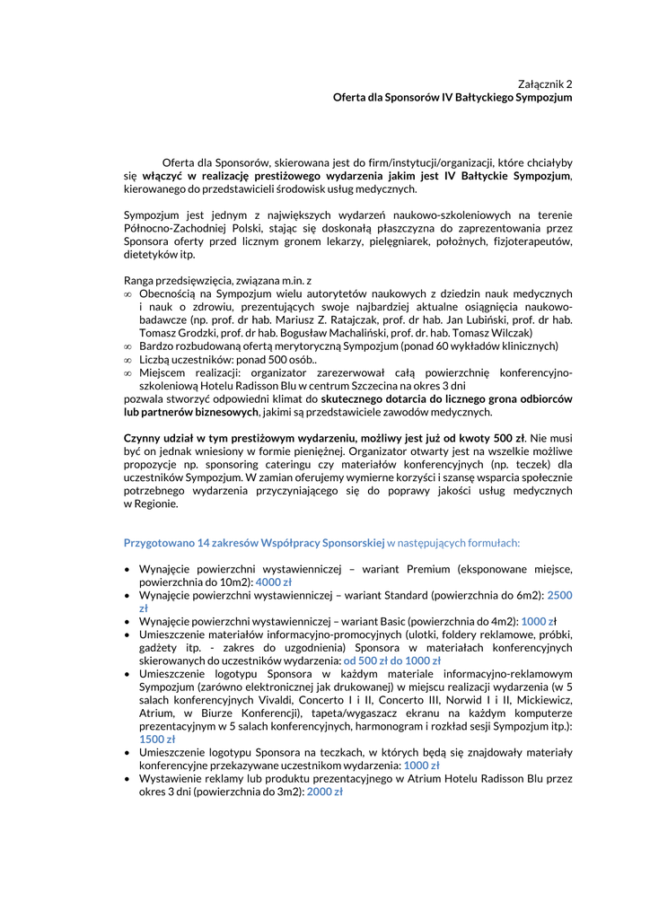 Załącznik 2 Oferta dla Sponsorów IV Bałtyckiego
