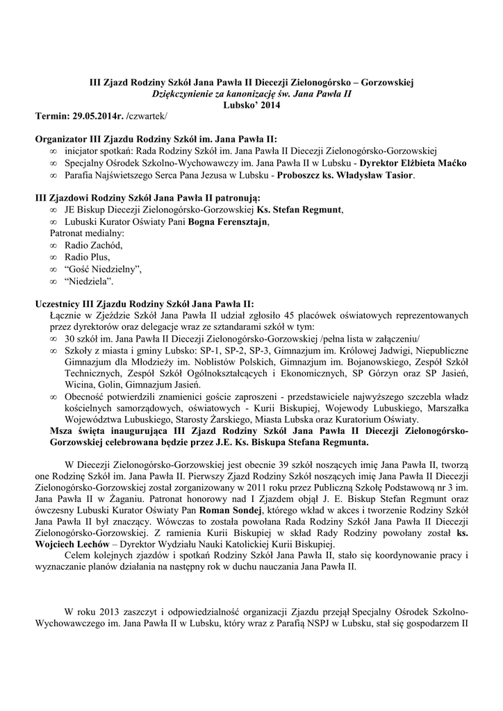 III Zjazd Rodziny Szkół Jana Pawła II Diecezji Zielonogórsko