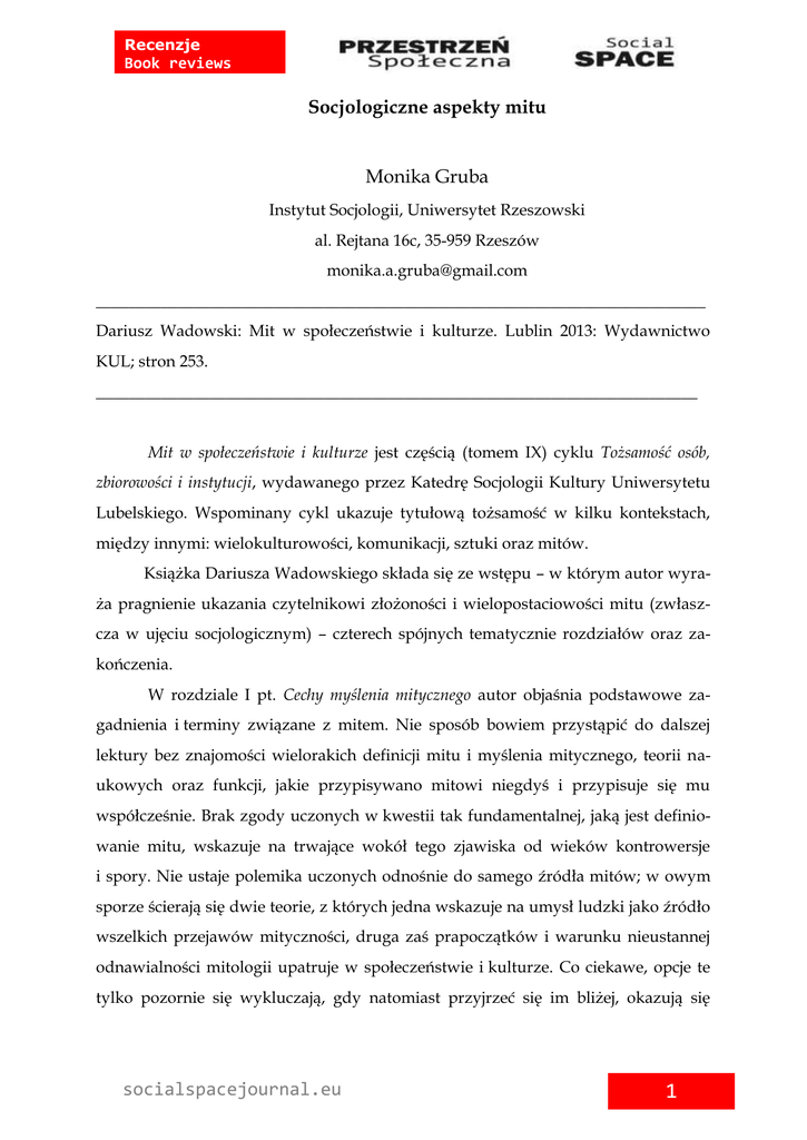 Socjologiczne aspekty mitu