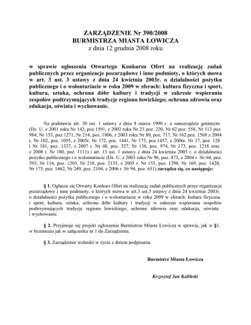 ZARZĄDZENIE Nr 390/2008 BURMISTRZA MIASTA ŁOWICZA