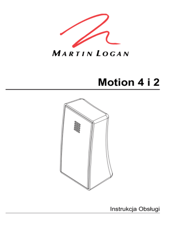 Motion 4 i 2 Instrukcja Obsługi Spis treści Instrukcje dot. bezpieczeństwa 4 Połączenia 5 Instalacja6 Najczęściej zadawane pytania 9 Rozwiązywanie problemów 10 2 Instrukcje dot. bezpieczeństwa WAŻNE PRZECZYTAJ DOKŁADNIE SEKCJĘ PRZED OBSŁUGĄ! UWAGA: ABY UNIKNĄĆ RYZYKA POŻARU LUB PORAŻENIA ELEKTRYCZNEGO NIE NARAŻAJ URZĄDZENIA NA DZIAŁANIE DESZCZU LUB WILGOCI. NIGDY NIE ZDEJMUJ POKRYWY (LUB TYLNEJ OBUDOWY). W ŚRODKU NIE MA CZĘŚCI WYMAGAJĄCYCH SERWISU UŻYTKOWNIKA. POZOSTAW SERWISOWANIE WYKFALIFIKOWANYM PRACOWNIKOM SERWISU. Symbol trójkąta z błyskawicą w środku ostrzega użytkownika przed możliwością wystąpienia nieizolowanych niebezpiecznych napięć wewnątrz obudowy urządzenia, które mogą powodować porażenie elektryczne człowieka. Symbol trójkąta z wykrzyknikiem w środku ostrzega użytkownika o występowaniu ważnych instrukcji obsługi i serwisowania w literaturze dołączonej do urządzenia. ŚRODKI BEZPIECZEŃSTWA I OSTROŻNOŚCI Pozostaw miejsce dookoła urządzenia w celu prawidłowej wentylacji. Unikaj instalacji: w gorących, chłodnych, nasłonecznionych miejscach, trzymaj urządzenie z daleka od źródeł ciepła. Chroń urządzenie przed: wilgocią, wodą i kurzem. Nie stawiaj ciężkich przedmiotów na obudowie. Nie zasłaniaj przewodów wentylacyjnych gazetami, obrusami, zasłonami, itp. Unikaj otwartego ognia (np. zapalonych świec, itp.) w pobliżu urządzenia. Zachowaj odpowiednie procedury utylizacji starych baterii. Nie wolno dopuścić, aby cokolwiek kapało lub zostało wylane na urządzenie. Nie stawiaj na urządzeniu pojemników z płynami (takich jak dzbanki, wazony, itp.). Nie pozwól na kontakt ze środkami owadobójczymi, takimi jak np. benzen. Nigdy nie rozkręcaj urządzenia lub modyfikuj go w dowolny sposób. Uwagi na temat przewodu i gniazda zasilającego. Dla zapewnienia maksymalnego bezpieczeństwa, oryginalny przewód zasilający musi zostać podłączony do prawidłowo uziemionego gniazda instalacji elektrycznej. Przewód zasilający musi być wykonany z trzech żył i zapewniać prawidłowe uziemienie urządzenia. Nieprawidłowe przewody zasilające są główną przyczyną uszkodzeń. Fakt, że urządzenie działa w sposób zadowalający nie świadczy o prawidłowym uziemieniu i bezpiecznej instalacji. Dla własnego bezpieczeństwa, jeżeli masz jakiekolwiek wątpliwości co do prawidłowości podłączenia i uziemienia skontaktuj się z w tej sprawie ze specjalistą w dziedzinie instalacji elektrycznych. Ogólnoeuropejskie zunifikowane napięcie zasilające. Wszystkie urządzenia dostosowane są do zasilania prądem zmiennym o napięciu 220-240V. Urządzenie jest podłączone do sieci zasilającej tak długo, jak przewód zasilający umieszczony jest w gnieździe, nawet, jeśli pewne jego funkcje są niedostępne. Aby całkowicie odłączyć urządzenie od sieci zasilającej, musisz wyjąć wtyczkę z gniazda sieciowego. Przed konfiguracją urządzenia, upewnij się, że gniazdo zasilające jest łatwo dostępne. Wyjmij przewód zasilający z gniazda, jeśli nie będziesz dłuższy czas korzystał z urządzenia. 3 Pierwsze kroki (wyłącznie Motion 4) 4 Połączenia WAŻNE! Przed tworzeniem połączeń odłącz wzmacniacz od zasilania! Głośniki przystosowano do wykorzystania łatwych w użyciu terminali typu „push-style” akceptujących kable głośnikowe bez końcówek lub pinowe. Po usunięciu gumowych wypełnień można również wykorzystać wtyki bananowe. Dopasuj ten sam kolor do terminali (+) i (-) pomiędzy głośnikami, a wzmacniaczem. Upewnij się, że połączenia są wykonane odpowiednio. 5 Instalacja UWAGA! Instalacja inna niż opisana w niniejszej instrukcji wymaga dokładnej specyfikacji od Martin Logan. Instalacja na płaskiej powierzchni Jeśli zamierzasz ustawić głośnik na płaskiej, szerokiej, stabilnej powierzchni, głośnik może zostać umieszczony bezpośrednio na niej. Wykorzystując głośnik w ten sposób pamiętaj o umieszczeniu gumowych podkładek na jego podstawie (rysunek powyżej). Pamiętaj, że głośnik nie jest magnetycznie ekranowany i nie powinien być ustawiony w bezpośrednim sąsiedztwie urządzeń mogących zakłócać jego pracę. Jeśli wykorzystujesz głośniki w kanale przednim skieruj je w stronę głównej pozycji odsłuchowej. Instalacja ścienna Jeśli głośnik będzie umieszczony na poziomie uszu słuchacza, przetwornik wysokotonowy powinien znajdować się na górze. Pozwoli to na dyspersję dźwięku bezpośrednio w kierunku pozycji odsłuchowej. Jeśli głośnik będzie umieszczony powyżej poziomu uszu słuchacza, przetwornik wysokotonowy powinien znajdować się na dole, a cały głośnik być skierowany pod kątem 20° w kierunku głównej pozycji odsłuchowej. 6 Instalacja Potrzebne akcesoria (w zestawie): • (1) schemat instalacyjny • (1) uchwyt ścienny • (1) dystans (tylko model Motion 4) • (2) śruby montażowe • (2) kotwy • (1) uchwyt głośnikowy • (2) ochraniacze ścienne Potrzebne narzędzia: • miarka • poziomica • wiertarka • śrubokręt krzyżakowy 1. Wkręć uchwyt głośnikowy w otwór na tylnym panelu. 2. Przyklej ochraniacze ścienne na tyle głośnika w miejscu jego styku z ścianą. 3. Przy pomocy schematu instalacyjnego i poziomicy ustal miejsce instalacji. 4. Zaznacz miejsce otworów do wywiercenia w ścianie. 5. Wywierć potrzebne otwory. Umieść kołki montażowe i przykręć uchwyt głośnikowy. Zauważ, że model Motion 4 wymaga zastosowania dodatkowego dystansu. 6. Zawieś głośnik umieszczając wcześniej przykręcony hak w otworze uchwytu ściennego. 7 Instalacja Montaż lub demontaż logotypu Aby zdjąć logotyp delikatnie pociągnij go do siebie. W celu ponownej instalacji wciśnij go pomiędzy maskownicę a obudowę. 8 Najczęściej zadawane pytania Jak czyścić moje głośniki? Aby usunąć kurz z głośnika, użyj specjalnej szmatki do kurzu. Przy powierzchniach drewnianych dopuszczalne jest 
