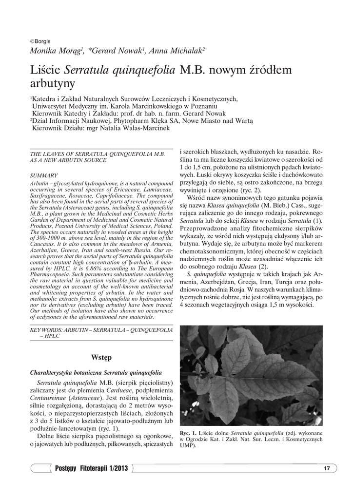 Liście Serratula quinquefolia MB nowym źródłem arbutyny