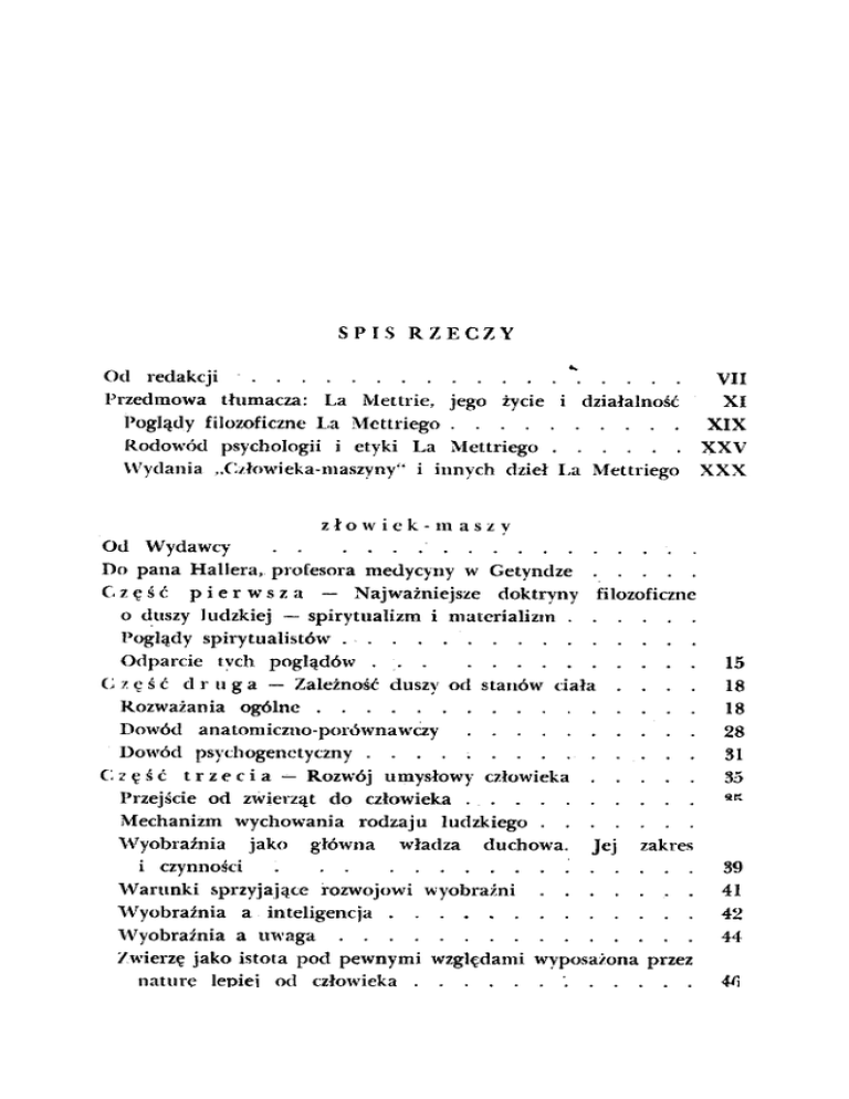 do Przedmowy t³umacza jako nowy rozdzia³ II, zatytu³owany "Pogl¹dy filozoficzne La Mettriego" 2. Rozdzia³ ten