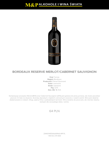 BORDEAUX RESERVE MERLOT/CABERNET SAUVIGNON 64 PLN