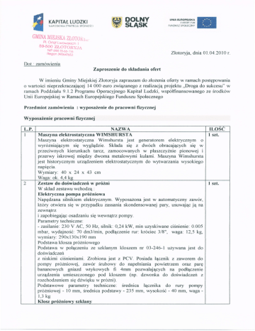 Przedmiot zamówienia : wyposażeniedo pracowni fizycznej
