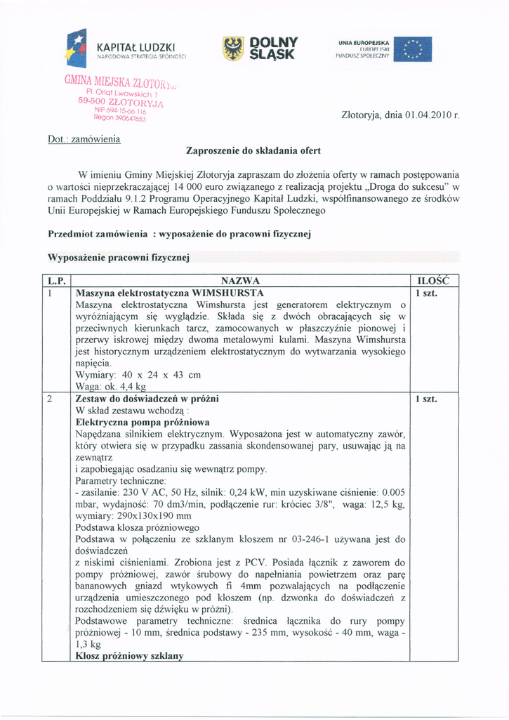oferta powinna zostac złożanado dnia 15.04.2010 r. w siedzibie Urzędu Miejskiego w Złotoryi,