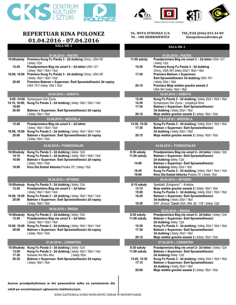 repertuar kina polonez 01.04.2016 - 07.04.2016