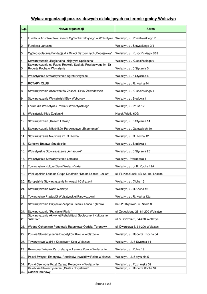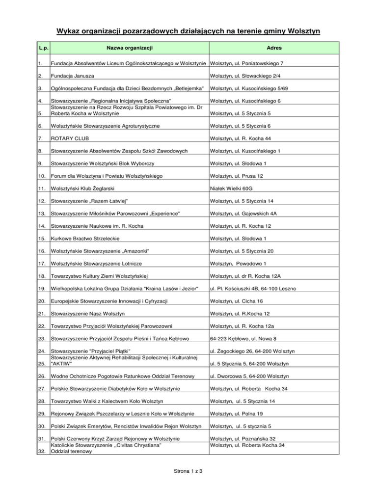 Wykaz organizacji - Urząd Miejski w Wolsztynie