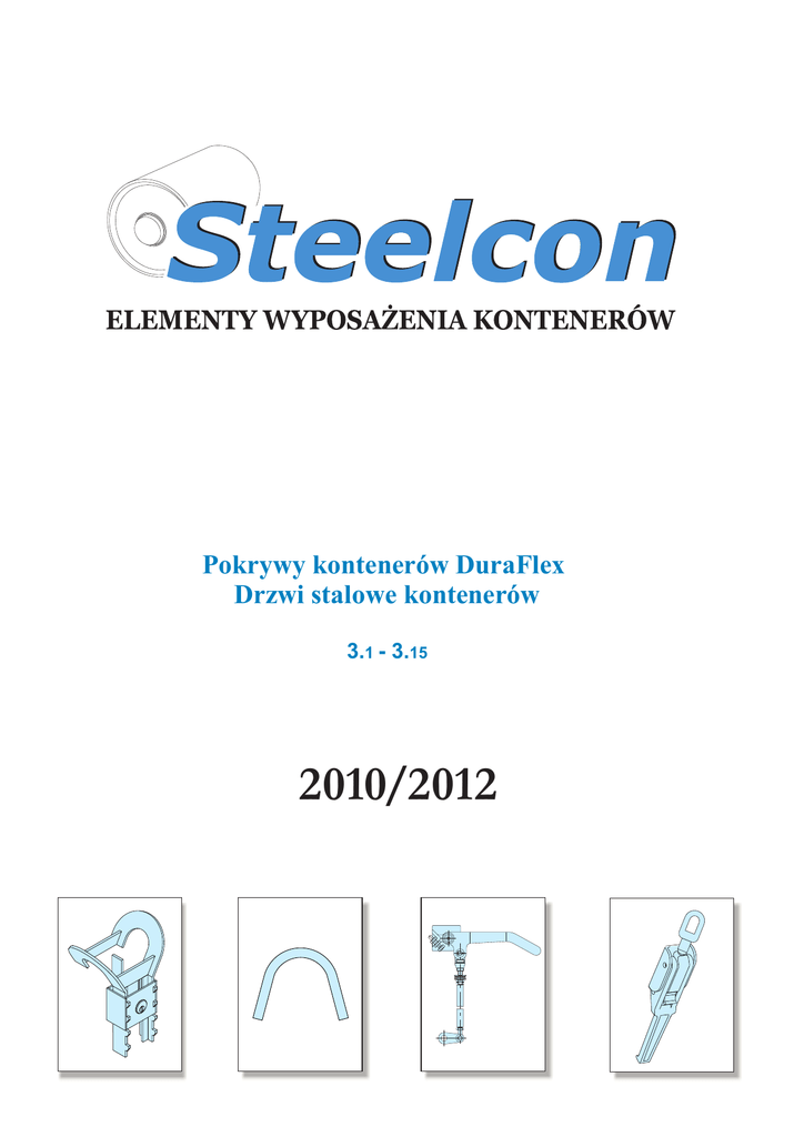 Pokrywy kontenerów DuraFlex Drzwi stalowe kontenerów 3.1 - 3.15 2010/2012 Pokrywy i drzwi 120 35/40 11/13/16 50 25 Nazwa Łącznik środkowy Łącznik środkowy Łącznik środkowy Łącznik środkowy Wymiar D=35mm D=40mm D=40mm D=40mm Uwagi szczelina 11mm, bez wzmocnienia szczelina 13mm, bez wzmocnienia szczelina 16mm, bez wzmocnienia szczelina 13mm, ze wzmocnieniem 66 56 135 451 131/- 130/- 152/- 150/- 153/- 151 451 128 01 Art. nr 451 128 01 451 131 451 130 451 152 451 150 451 153 451 151 70 90 11/13/16 35/40 15 40 25 11 Art. nr 451 101 451 120 451 121 451 123 Nazwa Łącznik Łącznik Łącznik Łącznik Łącznik Łącznik Łącznik Wymiar D=40mm D=35mm D=35mm D=40mm D=40mm D=40mm D=40mm Uwagi szczelina 15mm, odlew stalowy szczelina 11mm, bez wzmocnienia szczelina 11mm, ze wzmocnieniem szczelina 13mm, bez wzmocnienia szczelina 13mm, ze wzmocnieniem szczelina 16mm, bez wzmocnienia szczelina 16mm, ze wzmocnieniem M12 115 70 8 41 118 90 70 35/40 11 153 M12 160 Art. nr 451 160 451 161 451 162 6 451 160 451 161/- 162 10 Nazwa Podpora Blacha montażu Blacha montażu Wymiar Uwagi M12 blacha ustalająca blacha ustalająca D=35mm D=40mm D B L Art. nr 451 163 451 171 451 169 451 165 451 170 01 451 170 451 166 451 167 Nazwa Płaskownik sprężysty Płaskownik sprężysty Płaskownik sprężysty Płaskownik sprężysty Płaskownik sprężysty Płaskownik sprężysty Płaskownik sprężysty Płaskownik sprężysty Wymiar 1800x25x5mm 875x30x3mm 1745x30x3mm 1800x30x5mm 859x40x3mm 875x40x3mm 1745x40x3mm 1800x40x5mm Uwagi do zamontowania 452 292 © STEELCON Spółka z o.o. Jakiekolwiek rozpowszechnianie, kopiowanie lub wykorzystywanie w całości lub częściach zabronione. 3.1 Pokrywy i drzwi Widok A B D Profi l Centrycznie (E=0) L 30x30x2 Rura Pokrywa Pokrywa -E +E A Mimośrodowo (+E) R Tabela zamówień Art. nr 452 010 L B Nazwa Pokrywa pojemnika R D Mimośrodowo (-E) +E -E Sztuk Uwagi produkcja według zamówienia, cena na zapytanie 1400 Przekrój A-A 25 Tulejka z płytą do przyspawania przez klienta Pokrywa otwarta Przekrój B-B Pokrywa zamknięta 1800 48/54 452 028 Art. nr 452 025 452 011 452 182 3.2 20 75 452 025 200 452 011 Nazwa Blokada do pokrywy Muldy Uchwyt do pokrywy Muldy Rura Wymiar 48x2,9x1800mm Uwagi komplet surowy, do przyspawania do pokrywy © STEELCON Spółka z o.o. Jakiekolwiek rozpowszechnianie, kopiowanie lub wykorzystywanie w całości lub częściach zabronione. 1746 56 452 183/- 185 1906 1840 56 Sprężynowy system podnoszenia pokrywy 1906 1840 452 188/- 186 Art. nr Nazwa Wymiar 452 183 System podnoszenia 48x2,9x1800mm 452 185 System podnoszenia 48x2,9x1800mm Art. nr Nazwa 452 188 System podnoszenia 48x2,9x1800mm 452 186 System podnoszenia 48x2,9x1800mm Wymiar Uwagi z łącznikami, blachami, 3x płaskownik 30x3x1745mm, komplet wstępnie zmontowany, z blokadą z łącznikami, blachami, 3x płaskownik 40x3x1745mm, komplet wstępnie zmontowany, z blokadą Uwagi z łącznikami, blachami, 6x płaskownik 30x3x780mm, komplet wstępnie zmontowany, czop środkowy z łącznikami, blachami, 6x płaskownik 40x3x780mm, komplet wstępnie zmontowany, czop środkowy © STEELCON Spółka z o.o. Jakiekolwiek rozpowszechnianie, kopiowanie lub wykorzystywanie w całości lub częściach zabronione. 3.3 Pokrywy i drzwi/Drzwi kontenera A Typ 2 C Typ 1 B B C A F F E A 70 50 Typ 3 100 B C D D Profi l zewnętrzy wykonanie standardowe 110 Profi l zewnętrzy wykonanie ciężkie D A M14 Typ 4 210 B 910 15 49 Art. nr Nazwa 452 040 Drzwi kontenera 452 041 Drzwi kontenera 453 520 Pokrywa zamknięcia, komplet Tabela zamówień 3.4 Uwagi gruntowane, wykonanie ciężkie, z zamknięciami i zawiasami, , produkcja według zamówienia, cena na zapytanie gruntowane, wykonanie standardowe, z zamknięciami i zawiasami, produkcja według zamówienia, cena na zapytanie Art. nr Typ A B C D E F Sztuk © STEELCON Spółka z o.o. Jakiekolwiek rozpowszechnianie, kopiowanie lub wykorzystywanie w całości lub częściach zabronione. Pokrywy i drzwi/Wzmocnienia z blachy b a Nazwa Blacha Blacha Blacha Blacha Blacha Wymiar 100x100x3mm 150x100x3mm 200x100x3mm 200x200x3mm 300x300x3mm 500 Art. nr 459 083 459 085 459 084 459 082 459 081 500/800 Art. nr 452 050 452 051 Nazwa Blacha Blacha Wymiar 500x500x6mm 500x800x6mm Nazwa Blacha Blacha Blacha Blacha Blacha Blacha Wymiar 60x30x67x8mm 60x60x85x8mm 70x40x81x8mm 80x80x113x8mm 100x100x141x8mm 250x250x354x8mm Uwagi trójkąt trójkąt trójkąt trójkąt trójkąt trójkąt Nazwa Blacha Blacha Wymiar 95x95x135x10mm 100x100x141x10mm Uwagi trapez trapez b c a Art. nr 459 191 459 189 459 190 459 187 459 188 459 186 c b 20x45° a 88 Art. nr 459 193 459 192 180 Art. nr 454 283 Nazwa Wzmocnienie 6 Uwagi 6mm ≠ © STEELCON Spółka z o.o. Jakiekolwiek rozpowszechnianie, kopiowanie lub wykorzystywanie w całości lub częściach zabronione. 3.5 Kolory wg RAL 9005 9016 5019 7031 3001 3005 2004 1023 6018 6029 6002 6000 898 785 40 90 1462 65 1443 330 18 24 905 35 862 Art. nr 452 200 Nazwa DURAFLEX GA3557 Wymiar 905x1462mm Uwagi pokrywa z tworzywa, RAL 9005, czarny 22 898 740 65 36 903 1437 1457 348 44 91 44 828 Art. nr 452 210 3.6 Nazwa DURAFLEX FL3657 Wymiar 903x1457mm Uwagi pokrywa z tworzywa, RAL 9005, czarny © STEELCON Spółka z o.o. Jakiekolwiek rozpowszechnianie, kopiowanie lub wykorzystywanie w całości lub częściach zabronione. Kolory wg RAL 9005 9016 5019 7031 3001 3005 2004 1023 6018 898 6002 6000 750 23 65 1211 1188 285 42 90 6029 45 38 905 Art. nr 452 220 Nazwa DURAFLEX FL3647 Wymiar 905x1188mm Uwagi pokrywa z tworzywa, RAL 9005, czarny 928 780 91 1455 1436 335 39 22 36 60 932 45 855 Art. nr 452 230 Nazwa DURAFLEX FM3757 Wymiar 932x1455mm Uwagi pokrywa z tworzywa, RAL 9005, czarny © STEELCON Spółka z o.o. Jakiekolwiek rozpowszechnianie, kopiowanie lub wykorzystywanie w całości lub częściach zabronione. 3.7 Kolory wg RAL 9005 9016 5019 7031 3001 3005 2004 1023 6018 6029 6002 6000 928 795 25 239 1007 997 320 38 89 935 43 865 Nazwa DURAFLEX AE3740 Wymiar 935x1017mm Uwa