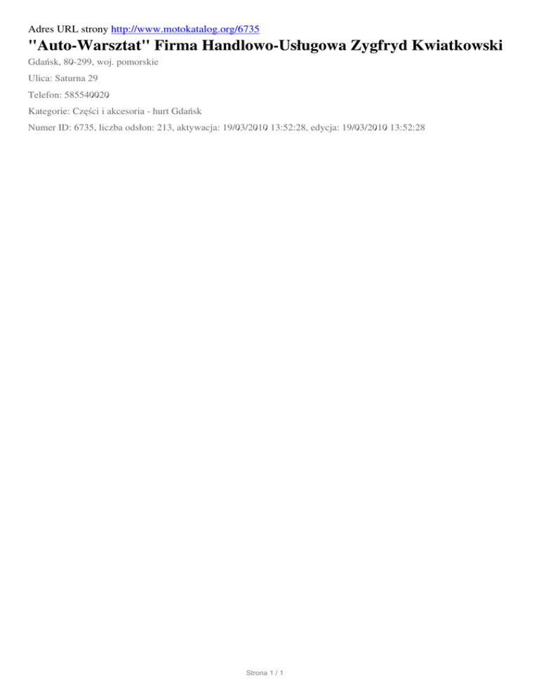 "Auto-Warsztat" Firma Handlowo-Uslugowa Zygfryd Kwiatkowski