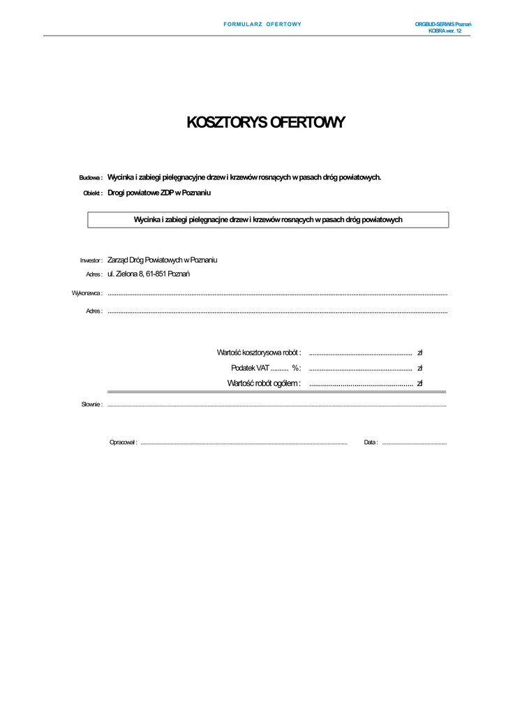 kosztorys ofertowy - Zarząd Dróg Powiatowych w Poznaniu
