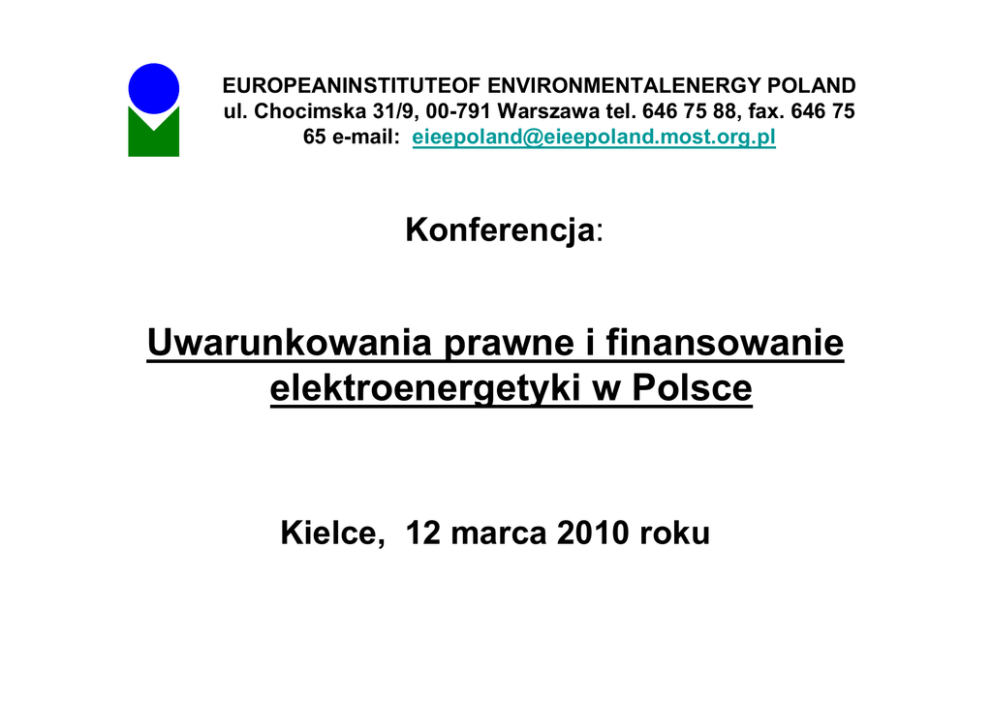EIEE Poland - Lilla Lesiak - Uwarunkowania prawne i finansowanie