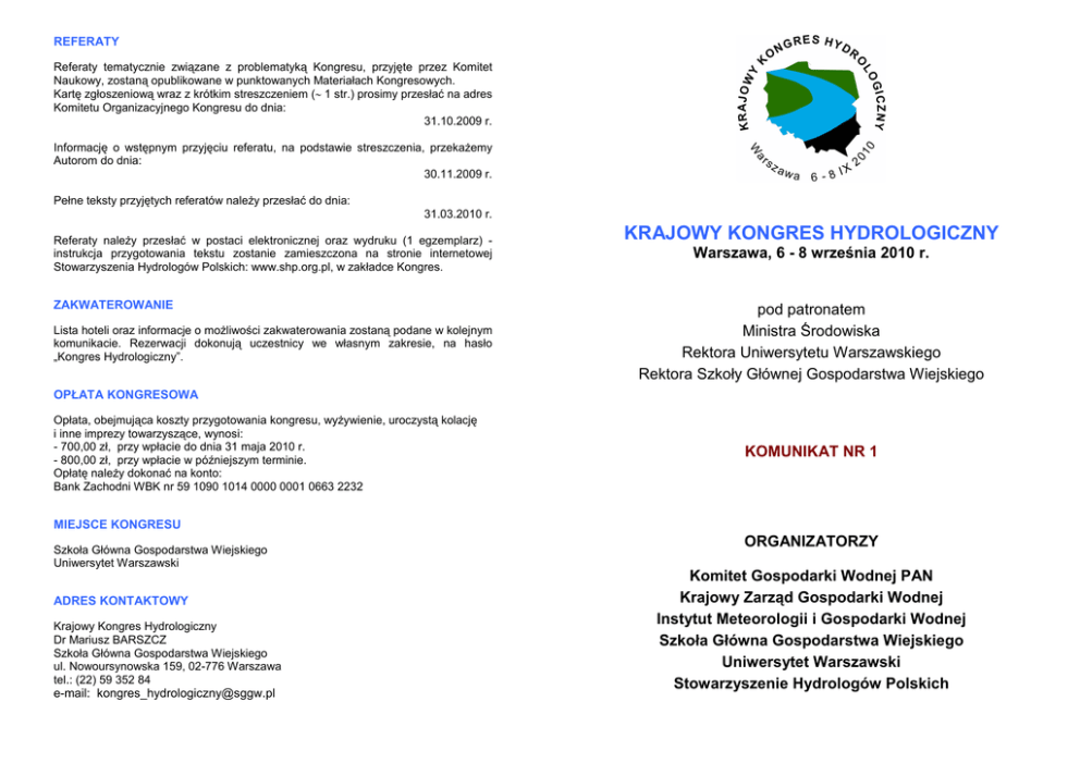 Komunikat nr 1 - Stowarzyszenie Hydrologów Polskich