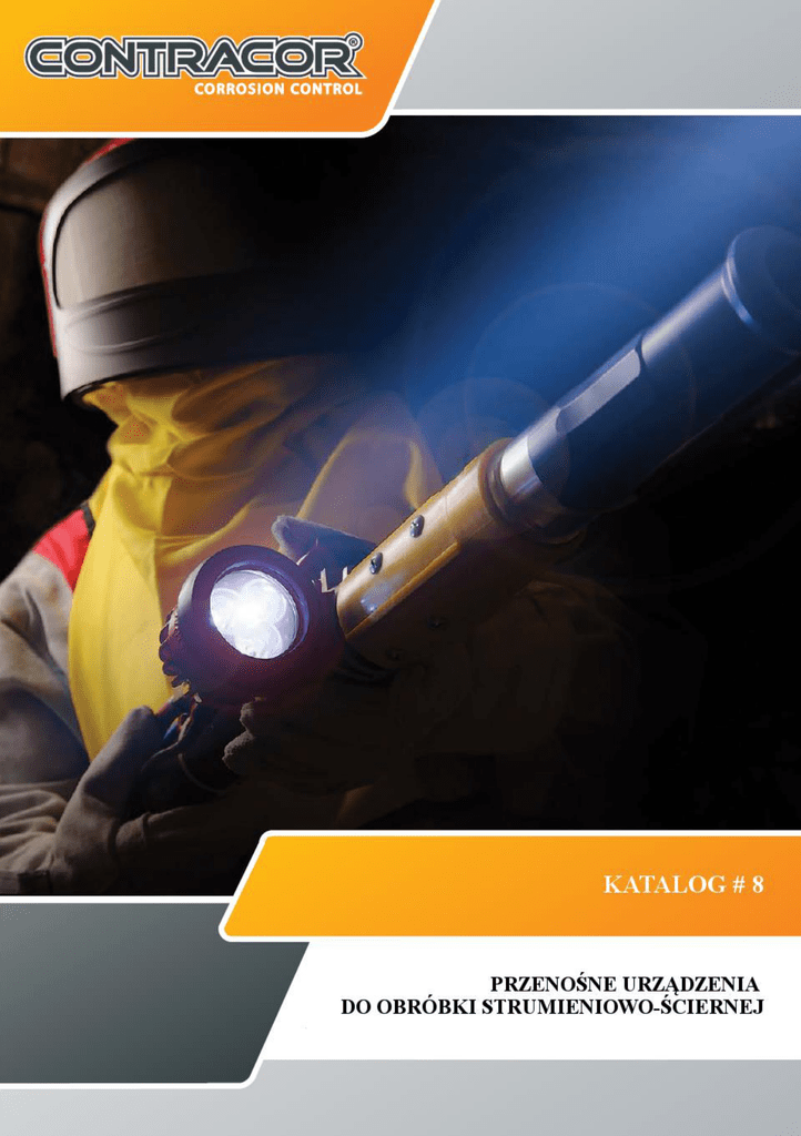 SPIS TREŚCI SPIS TREŚCI 2 ZESTAWY PRZENOŚNEGO WYPOSAŻENIA DO OBRÓBKI STRUMIENIOWO-ŚCIERNEJ 3 PRZENOŚNE URZĄDZENIA DO OBRÓBKI STRUMIENIOWO-ŚCIERNEJ I CZĘŚCI ZAMIENNE DO URZĄDZEŃ 6 WĘŻE DO CZYSZCZENIA STRUMIENIOWO-ŚCIERNEGO, WĘŻE ZDALNEGO STEROWANIA 16 ZŁĄCZKI DO WĘŻY DO CZYSZCENIA STRUMIENIOWO-ŚCIERNEGO, LINKI BEZPIECZEŃSTWA 19 DYSZE STRUMIENIOWE 23 WYPOSAŻENIE DO SPECJALNYCH ZASTOSOWAŃ 43 WYPOSAŻENIE BEZPIECZEŃSTWA DLA OPERATORA 49 WYPOSAŻENIE I CZĘŚCI DO SPRĘŻONEGO POWIETRZA 57 URZĄDZENIA POMIAROWE 69 Katalog wraz z cennikiem obowiązuje od 01.03.2016. Wszystkie dotychczasowe ceny przestają obowiązywać po opublikowaniu nowego cennika. Ceny nie zawierają Vat, pakowania, transportu i ubezpieczenia. Wszystkie ceny, dane techniczne, specyfikacje i szczegóły publikowane w niniejszym katalogu podlegają zmianom bez zawiadomienia. Contracor GmbH. Najnowsza wersja katalogu jest dostępna do pobrania na naszej stronie internetowej www.contracor.com.pl Prawa autorskie © 2016 Contracor ®. Wszystkie prawa zastrzeżone. Zestawy sprzętu ochronnego i oczyszczarek strumieniowych Na rysunku powyżej: BlastPack-200, SafePack-Aspect Kod Typ Opis 10011 BlastPack-25 DBS-25RC, 5m wąż dwuzwojowy, 5m ExtraBlast-13, NHP-0, CQP-0, NTC-5.0 10012 BlastPack-50 DBS-50RC, 5m wąż dwuzwojowy, 5m ExtraBlast-13, NHP-0, CQP-0, NTC-5.0 10013 BlastPack-100 DBS-100RC, 20m wąż dwuzwojowy, 20m ExtraBlast-25, NHP-1, CQP-1, RTC-6.5 10014 BlastPack-200 DBS-200RC, 20m wąż dwuzwojowy, 20m ExtraBlast-32, NHP-2, CQP-2, RTC-9.5 30905 SafePack-Comfort Comfort, BAF, 20m BAH, Kombinezon rozm. 54 wraz z rękawicami 30906 SafePack-Aspect Aspect, BAF, 20m BAH, Kombinezon rozm. 54 wraz z rękawicami 1 opakowanie jednorazowych wizjerów (50 szt.). Nasze zestawy urządzeń do czyszczenia strumieniowo-ściernego i sprzętu ochronnego zawierają niezbędny osprzęt, połączenia itp. Kompletny zestaw urządzeń do czyszczenia strumieniowo-ściernego i sprzętu ochronnego będzie zamontowany na drewnianej palecie podczas dostawy. 4 Zestaw oczyszczarek strumieniowych 10515 DBS-50RC 10301 DBS-100RC 10401 DBS-200RC 12110 ExtraBlast-13 12113 ExtraBlast-25 12114 ExtraBlast-32 12309 CQP-0 12301 CQP-1 12302 CQP-2 12209 NHP-0 12201 NHP-1 12202 NHP-2 12551 NTC-5,0 12062 RTC-6,5 12064 RTC-9,5 BlastPack-200 DBS-25RC BlastPack-100 10510 Opis BlastPack-50 Typ BlastPack-25 Kod Oczyszczarka ze sterowaniem RC, 25 litrowa · Oczyszczarka ze sterowaniem RC, 50 litrowa · Oczyszczarka ze sterowaniem RC, 100 litrowa · · · Węże ścierniwa 13x27, rolka 5 m · Węże ścierniwa 25x39, rolka 20 m · · · Złączka do węży o średnicy 25 x 39 mm · · Złączka do węży o średnicy 32 x 48 mm Nylonowy uchwyt na dysze o średnicy 13 x 27 mm · Nylonowy uchwyt na dysze o średnicy 25 x 39 mm · · Węże ścierniwa 32x48, rolka 20 m Złączka do węży o średnicy 13 x 27 mm · · Oczyszczarka ze sterowaniem RC, 200 litrowa · Nylonowy uchwyt na dysze o średnicy 32 x 48 mm Dysza Venturi, węglik wolframu, 5.0 mm x 45 mm · Dysza Venturi, węglik wolframu 6.5 mm x 130 mm · Dysza Venturi, węglik wolframu, 9.5 mm x 170 mm Zestawy sprzętu ochronnego Safe Pack Com fort 30000 30600 Comfort Aspect Safe Pack Aspe ct · 30602 Opis SafePack Aspect Typ SafePack Comfort Kod Hełm, wytrzymała nylonowa peleryna · Hełm, wytrzymała nylonowa peleryna · Wizjery jednorazowe, opakowanie 50 szt. 30400 BAF · · Filtr powietrza do oddychania, 2 wyjścia 30909 BAH · · Wąż powietrza do oddychania 9 mm x 15 mm, rolka 20 m. 30702 Rozm. 54 (L) · · Kombinezon do czyszczenia strumieniowego. Skóra/bawełna, rękawice. Nasze zestawy urządzeń do czyszczenia strumieniowo-ściernego i sprzętu ochronnego zawierają niezbędny osprzęt, połączenia, itp. Kompletny zestaw urządzeń do czyszczenia strumieniowo-ściernego i sprzętu ochronnego będzie zamontowany na drewnianej palecie podczas dostawy. 5 Urządzenia do czyszczenia strumieniowo-ściernego ZASTOSOWANIE Obróbka strumieniowo-ścierna konstrukcji metalowych i budowli, mostów, zbiorników, rurociągów, powierzchni betonowych. Czyszczenie do stopnia SA-3.0. Osiągi do 37 m²/h ( zobacz Tabelę osiągów). PRZEWIDZIANE DO PRACY ze wszystkimi suchymi środkami ściernymi, o max. grubości ziarna 3,5 mm. DBS-25RC DBS-50RC DBS-100 DBS-100RC DBS-100RCS Max. ciśnienie operacyjne w barach 10 10 10 10 Pojemność zbiornika w litrach 25 50 100 200 Temperatura pracy w °С –10 — +50 –10 — +50 –10 — +50 – 10 — +50 Średnica zbiornika w mm 306 415 508 609 Wysokość zbiornika mm 960 1180 1226 1480 Waga w kg 46 73 Dane techniczne: 105 / 110 / 110 DBS-200 DBS-200RC DBS-200RCS 135 / 140 / 140 Kalkulacja zużycia sprężonego powietrza (m3/min) Średnica dyszy Ilość dopływu powietrza Plus hełm Min. ilość dopływu powietrza Plus 50% rezerwy 6,5 mm 2,3 0,5 1,4 4,2 8,0 mm 3,9 0,5 2,2 6,6 9,5 mm 5,5 0,5 3,0 9,0 11,0 mm 7,2 0,5 3,9 11,6 12,5 mm 9,6 0,5 5,0 16,1 Tabela osiągów Średnica dyszy w mm: 6,5 8 9,5 11 12,5 Wypływ spręż. powietrza w m³/min. przy ciśnieniu 8 bar 4,2 6,6 9 11,6 16,1 10 15 21 28 37 SA 2 /2 5 9 14 21 28 SA 3 4 6 9 13 17 SA 2 40 35 32 29 28 SA 2 1/2 58 51 46 42 40 SA 3 78 68 62 56 54 SA 2 Średni wypływ w m²/h Średnie zużycie środków ściernych w kg/m 1 7 DBS-25RC, DBS-50 RC (z uchwytem sterującym) Separator wilgoci CAF-0 Wąż dwuzwojowy Zawór RCV-0 Uchwyt sterujący Zestaw standardowy: DBS-25 RC DBS-50 RC - zbiornik o pojemności 25 litrów - sito - pokrywa - zawór dozujący FSV-0 - wysokiej jakości separator wilgoci CAF-0 - szybkozłączki do węży CFT-0 - urządzenie do sterowania na odległość z pneumatycznie uruchamianym zaworem głównym RCV, z uchwytem DMH, z 5-metrowym dwuzwojowym wężem 8 - zbiornik o pojemności 50 litrów - sito - pokrywa - zawór dozujący FSV-0 - wysokiej jakości separator wilgoci CAF-0 - szybkozłączki do węży CFT-0 - urządzenie do sterowania na odległość z pneumatycznie uruchamianym zaw