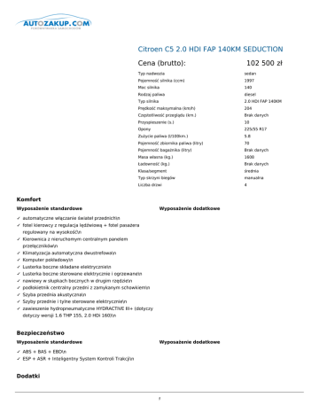 Citroen C5 2.0 HDI FAP 140KM SEDUCTION