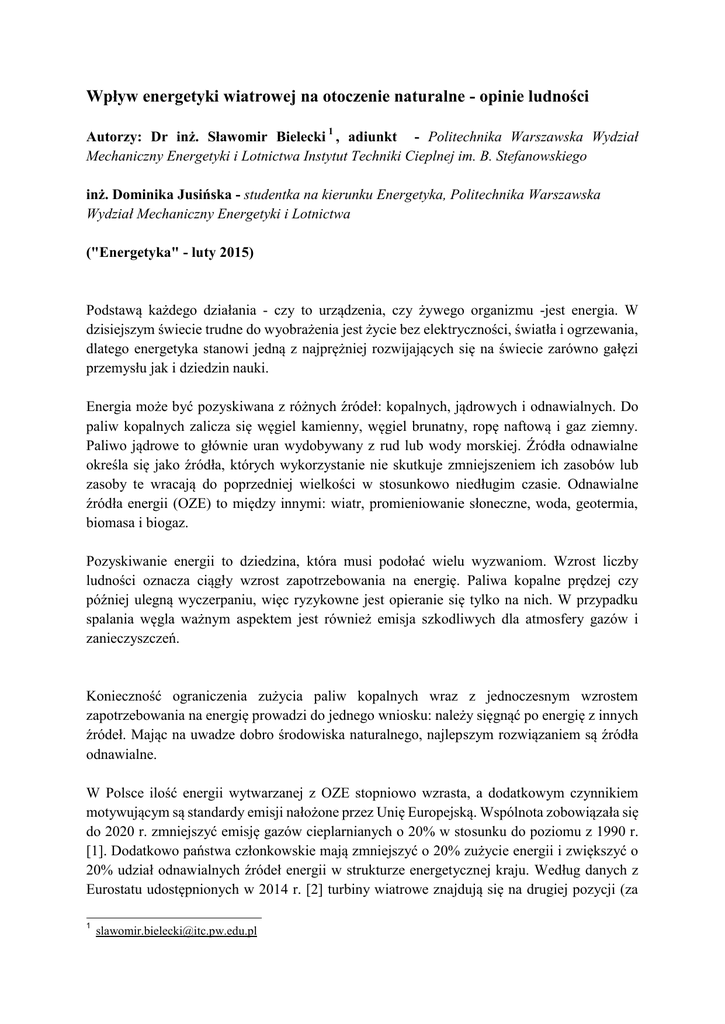 [7] Markowska-Cerić J., Walka o wiatraki, „Energetyka Cieplna i Zawodowa" 2013, nr 2, s.