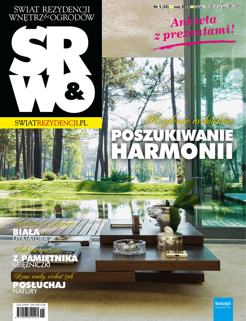 Nr 5 (32) maj 2012 Cena: 10,90 zł (w tym 8% VAT) Ankieta ! i m a t n e z z pre Rezydencje architektów Poszukiwanie harmonii Królowa we wnętrzach Biała dyktatura Ślub jak marzenie Z pamiętnika księzniczki księżniczki Szum wody, rechot żab Posłuchaj natury Index 219487 ISSN 1897-3108 z rekomendacją do dzieła! KNOTTE Abażur wykonany podstawowym ściegiem, a efekt niezwykle interesujący. ➜ designbyhive.com Światowi projektanci puszczają oczka w stronę miłośniczek wyszywania, haftowania i dziergania na drutach. CORD Klosz inspirowany haftem oraz dawnymi technikami wyplatania koszy. Mia Cullin dla marki Zero. ➜ zero.se CABARET Seria dzierganych siedzisk i stolików. ➜ kennethcobonpue.com ŚRWO 5/2012 D.D.C. Limitowana seria mebli, zdobionych wzorami przypominającymi ręczny haft. ➜ dedon.de www.swiatrezydencji.pl 10 TEXELAAR OTTOMAN STITCHED Krzyżykiem lub „na okrętkę”. Koncepcja Torda Boontje dla marki Moroso. ➜ tordboontje.com ZDJĘCIA: SERWISY FIRM, WYBÓR: ANNA LEWCZUK Puf-kłębek z owczej wełny. Projekt: Christien Meindertsma. ➜ droog.com na wybiegu wyszukane Zanim zagra świerszcz CHAIR 6. Nowoczesna, kobieca forma i barwa sprzyjająca myśleniu o niebieskich migdałach. Marka Lebello zamienia ogrodową przestrzeń w raj marzyciela. FOTO Z lebello.com ATLANTIS. Parasol na...pogodę. Warto już rozpocząć przygotowania do upalnego sezonu i zapewnić sobie nieco orzeźwiającego, „przenośnego” cienia. 124 125 EDEN. Lekkie, świeże, romantyczne – zupełnie jak wiosna. Krzesło jest tylko jednym z elementów serii białych mebli od marki Skagerak. Warto obejrzeć wszystkie. Zewnętrzne łoże z baldachimem marki Ego Paris pozwoli wykreować własną przestrzeń do flirtu ze słońcem. FOTO www.swiatrezydencji.pl ANCHER. FOTO Z sk ager ak‑denmark.com Z furniture‑egoparis.com Stwórz osobiste niebo, gdzie wygrzejesz się w promieniach słońca i ochłoniesz w kojącym cieniu drzew. W dzień towarzyszyć Ci będą ptaki, a wieczorem zagra świerszcz… Dni, kiedy relaks po ciężkim dniu w pracy najlepiej smakuje w ogrodowych przestrzeniach, są coraz bliżej. wybór: anna lewczuk www.swiatrezydencji.pl ŚRWO 5/2012 Z sk ager ak‑denmark.com ŚRWO 5/2012 FOTO SUNNY. MERMAID. Niekończące się godziny relaksu? Kto o tym nie marzy? Szezlong od Kennetha Cobonpue pozwoli zapomnieć o całym świecie. Na długą chwilę... FOTO Z kennethcobonpue.com Oczekiwanie na ciepły dotyk słońca umilą leżaki od Lebello. Proste, kolorowe i wygodne. OASIS. Zanurz się w miękkości poduszek i odpłyń w kojący sen. Ukołysze cię śpiew ptaków. Wygodny sposób na drzemkę na świeżym powietrzu znalazł Kenneth Cobonpue. FOTO Z kennethcobonpue.com FOTO Z lebello.com