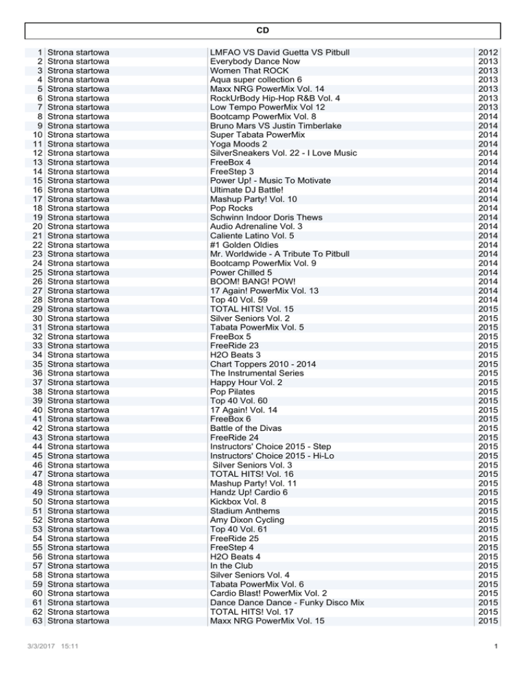 CD 1 2 3 4 5 6 7 8 9 10 11 12 13 14 15 16 17 18 19 20 21 22 23 24 25 26 27 28 29 30 31 32 33 34 35 36 37 38 39 40 41 42 43 44 45 46 47 48 49 50 51 52 53 54 55 56 57 58 59 60 61 62 63 Strona startowa Strona startowa Strona startowa Strona startowa Strona startowa Strona startowa Strona startowa Strona startowa Strona startowa Strona startowa Strona startowa Strona startowa Strona startowa Strona startowa Strona startowa Strona startowa Strona startowa Strona startowa Strona startowa Strona startowa Strona startowa Strona startowa Strona startowa Strona startowa Strona startowa Strona startowa Strona startowa Strona startowa Strona startowa Strona startowa Strona startowa Strona startowa Strona startowa Strona startowa Strona startowa Strona startowa Strona startowa Strona startowa Strona startowa Strona startowa Strona startowa Strona startowa Strona startowa Strona startowa Strona startowa Strona startowa Strona startowa Strona startowa Strona startowa Strona startowa Strona startowa Strona startowa Strona startowa Strona startowa Strona startowa Strona startowa Strona startowa Strona startowa Strona startowa Strona startowa Strona startowa Strona startowa Strona startowa 3/3/2017 15:11 LMFAO VS David Guetta VS Pitbull Everybody Dance Now Women That ROCK Aqua super collection 6 Maxx NRG PowerMix Vol. 14 RockUrBody Hip-Hop R&B Vol. 4 Low Tempo PowerMix Vol 12 Bootcamp PowerMix Vol. 8 Bruno Mars VS Justin Timberlake Super Tabata PowerMix Yoga Moods 2 SilverSneakers Vol. 22 - I Love Music FreeBox 4 FreeStep 3 Power Up! - Music To Motivate Ultimate DJ Battle! Mashup Party! Vol. 10 Pop Rocks Schwinn Indoor Doris Thews Audio Adrenaline Vol. 3 Caliente Latino Vol. 5 #1 Golden Oldies Mr. Worldwide - A Tribute To Pitbull Bootcamp PowerMix Vol. 9 Power Chilled 5 BOOM! BANG! POW! 17 Again! PowerMix Vol. 13 Top 40 Vol. 59 TOTAL HITS! Vol. 15 Silver Seniors Vol. 2 Tabata PowerMix Vol. 5 FreeBox 5 FreeRide 23 H2O Beats 3 Chart Toppers 2010 - 2014 The Instrumental Series Happy Hour Vol. 2 Pop Pilates Top 40 Vol. 60 17 Again! Vol. 14 FreeBox 6 Battle of the Divas FreeRide 24 Instructors' Choice 2015 - Step Instructors' Choice 2015 - Hi-Lo Silver Seniors Vol. 3 TOTAL HITS! Vol. 16 Mashup Party! Vol. 11 Handz Up! Cardio 6 Kickbox Vol. 8 Stadium Anthems Amy Dixon Cycling Top 40 Vol. 61 FreeRide 25 FreeStep 4 H2O Beats 4 In the Club Silver Seniors Vol. 4 Tabata PowerMix Vol. 6 Cardio Blast! PowerMix Vol. 2 Dance Dance Dance - Funky Disco Mix TOTAL HITS! Vol. 17 Maxx NRG PowerMix Vol. 15 2012 2013 2013 2013 2013 2013 2013 2014 2014 2014 2014 2014 2014 2014 2014 2014 2014 2014 2014 2014 2014 2014 2014 2014 2014 2014 2014 2014 2015 2015 2015 2015 2015 2015 2015 2015 2015 2015 2015 2015 2015 2015 2015 2015 2015 2015 2015 2015 2015 2015 2015 2015 2015 2015 2015 2015 2015 2015 2015 2015 2015 2015 2015 1 64 65 66 67 68 69 70 71 72 73 74 75 76 77 78 79 80 81 82 83 84 85 86 87 88 89 90 91 92 93 94 95 96 97 98 99 100 101 102 103 104 105 106 107 108 109 110 111 112 113 114 115 116 117 118 119 120 121 122 123 124 125 126 127 128 Strona startowa Strona startowa Strona startowa Strona startowa Strona startowa Strona startowa Strona startowa Strona startowa Strona startowa Strona startowa Strona startowa Strona startowa Strona startowa Strona startowa Strona startowa Strona startowa Strona startowa Strona startowa Strona startowa Strona startowa Strona startowa Strona startowa Strona startowa Strona startowa Strona startowa Strona startowa Strona startowa Strona startowa Strona startowa Strona startowa Strona startowa Strona startowa Strona startowa Strona startowa Strona startowa Strona startowa Strona startowa Strona startowa Strona startowa Strona startowa Strona startowa Strona startowa Strona startowa Strona startowa Strona startowa Strona startowa Strona startowa Strona startowa Strona startowa Strona startowa Strona startowa Strona startowa Strona startowa Strona startowa Strona startowa Strona startowa Strona startowa Strona startowa Strona startowa Strona startowa Strona startowa Strona startowa Strona startowa Strona startowa Strona startowa 3/3/2017 15:11 Low Tempo PowerMix 13 Silver Seniors Vol. 5 Cardio Warrior FreeRide 26 FreeStep 5 H2O Beats 5 Handz Up! Cardio 7 Viva Latino - Best of Latin Mashup Party! Vol. 12 POP goes RETRO 20 Smash Hits! Latin Tabata PowerMix Top 40 Vol. 62 17 Again! Vol. 15 Best of 2015 FreeBox 7 FreeRide 27 Millennium Step & Conditioning H2O Beats 6 SHOCKWAVE Vol. 2 TOTAL HITS! Vol. 18 70's Hits Reloaded Mat Pilates Vol. 5 Bootcamp Vol. 10 Battle of the Brits! Cycling Shannon Fable Top AU Hits Silver Seniors Vol. 6 Music for Active Aging L. Biscontini Pop Pilates - POP 5 Instructors' Choice 2016 - Cardio Instructors' Choice 2016 - Step Top 40 Vol. 63 H2O Beats 7 FreeStep 6 FreeRide 28 FreeBox 8 TOTAL HITS! Vol. 19 Best of 2000's Vol 2 Tropical House PowerMix Ride PowerMix Vol. 4 Instrumental Cardio Gregg Cook Cykling Mashup Party! Vol. 13 PowerChilled 6 Best of 2016 HIIT IT! Outrageous Oldies The Loco-Motion Top 40 Vol. 65 Best of Mashup Party! Vol. 2 Free Box 9 FreeRide 29 Free Step 7 H2O Beats 8 Top 40 Vol. 64 Silver Seniors Vol. 7 A Tribute to Prince & David Bowie TOTAL HITS! Vol. 20 Instrumental Cardio Handz Up! Cardio 8 Chill - Tropical House Edition TOTAL HITS! Vol. 21 A Tribute To Calvin Harris Handz Up! Cardio 9 Baby Boomer 2015 2015 2015 2015 2015 2015 2015 2015 2015 2015 2016 2016 2016 2016 2016 2016 2016 2016 2016 2016 2016 2016 2016 2016 2016 2016 2016 2016 2016 2016 2016 2016 2016 2016 2016 2016 2016 2016 2016 2016 2016 2016 2016 2016 2016 2016 2016 2016 2016 2016 2016 2016 2016 2016 2016 2016 2016 2016 2016 2016 2016 2017 2017 2017 2017 2