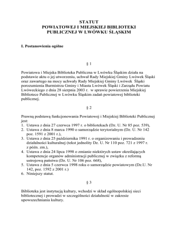 statut powiatowej i miejskiej biblioteki publicznej w lwówku śląskim