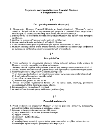 Regulamin zwiedzania Muzeum Powstań Śląskich w