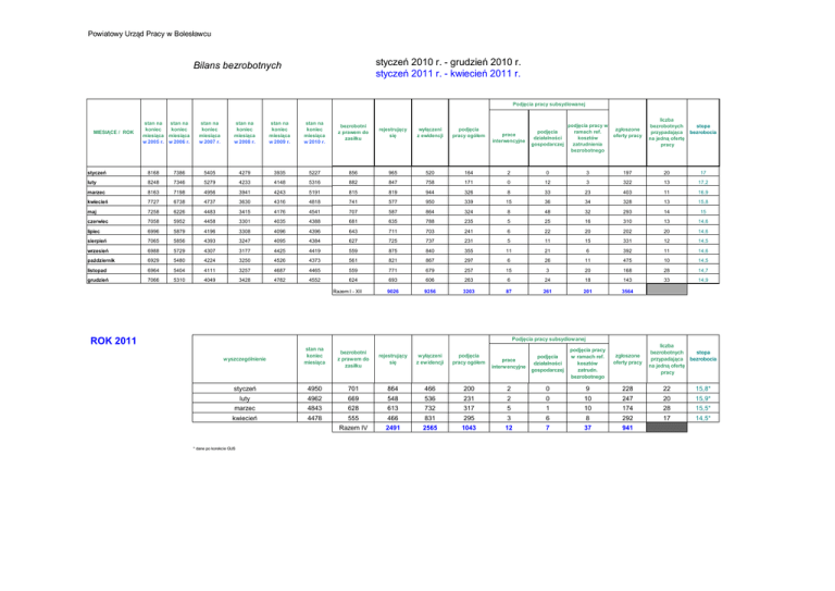 bilans - kwiecień - Powiatowy Urząd Pracy w Bolesławcu
