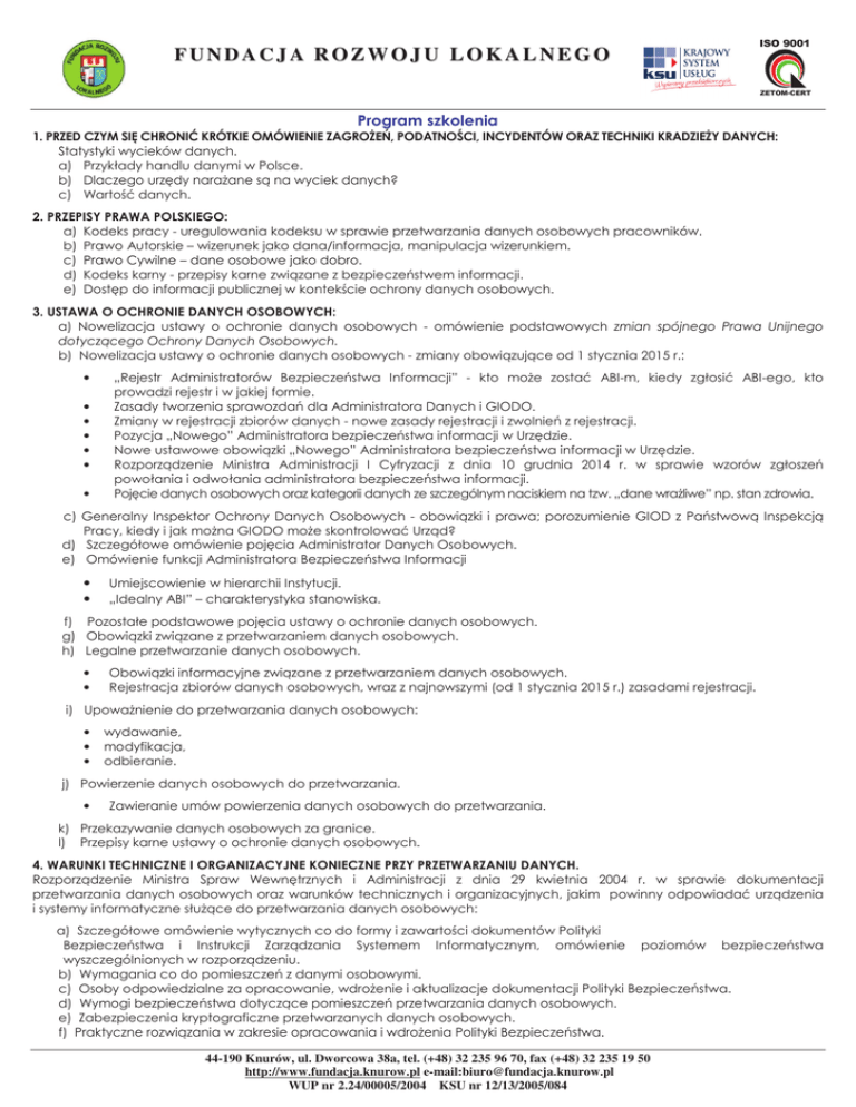 Zakres tematyczny szkolenia - Fundacja Rozwoju Lokalnego