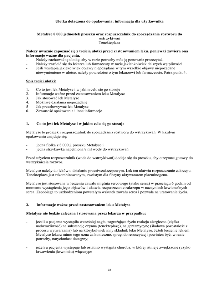 Metalyse należy do leków o działaniu przeciwzakrzepowym. Lek ten ułatwia rozpuszczanie zakrzepu.