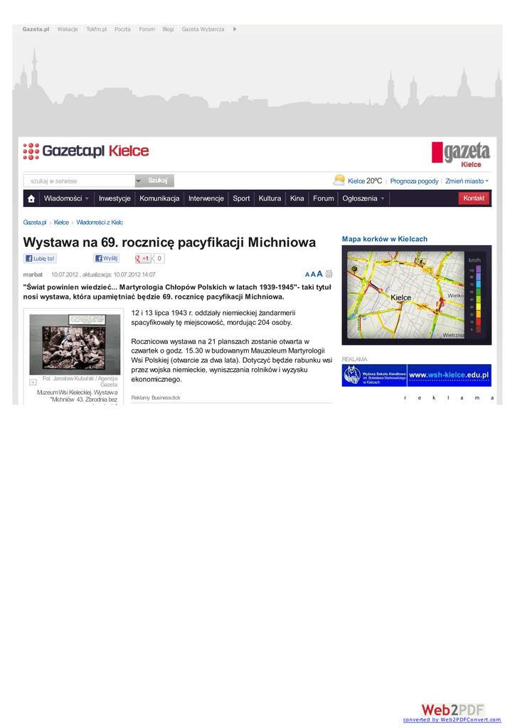 Gazeta.pl Wakacje Tokfm.pl Poczta Forum Blogi Gazeta Wyborcza Szukaj Wiadomości Gazeta.pl Kielce Inwestycje Komunikacja Kielce 20ºC Interwencje Sport Kultura Kina Forum marbat Kontakt Ogłoszenia Wiadomości z Kielc Wystawa na 69. rocznicę pacyfikacji Michniowa Lubię to! Prognoza pogody Zmień miasto Wyślij Mapa korków w Kielcach 0 10.07.2012 , aktualizacja: 10.07.2012 14:07 AAA "Świat powinien wiedzieć... Martyrologia Chłopów Polskich w latach 1939-1945"- taki tytuł nosi wystawa, która upamiętniać będzie 69. rocznicę pacyfikacji Michniowa. 12 i 13 lipca 1943 r. oddziały niemieckiej żandarmerii spacyfikowały tę miejscowość, mordując 204 osoby. Fot. Jarosław Kubalski / Agencja Gazeta Muzeum Wsi Kieleckiej. Wystawa "Michniów 43. Zbrodnia bez przedawnienia" Rocznicowa wystawa na 21 planszach zostanie otwarta w czwartek o godz. 15.30 w budowanym Mauzoleum Martyrologii Wsi Polskiej (otwarcie za dwa lata). Dotyczyć będzie rabunku wsi przez wojska niemieckie, wyniszczania rolników i wyzysku ekonomicznego. Reklamy Businessclick REKLAMA r e k l a m a converted by Web2PDFConvert.com przedawnienia" Samochody Dacia. Zobacz samochody Dacii. Komfort za przystępną cenę! www.dacia.pl ZOBACZ TAKŻE Świat bez podatków. Kino Konesera Wewnętrzna przemiana? Przemiana Twojego Volvo. Już za 246zł! www.volvocars.pl Pilnie potrzebna krew dla dziennikarza Radia Kielce Shell FuelSave Konkurs europosłanki. Wymyśl hasło, a pojedziesz do Brukseli [WIDEO] Nowy singiel Kasy. "Gram wariata, zawsze robię, co chcę" [WIDEO] Nowe oszczędne paliwa w dotychczasowej cenie. www.shell.pl Zobacz więcej na temat: Michniów Rap na ludowo. Wyjątkowy projekt z gościnnym udziałem kielczan [WIDEO] PODZIEL SIĘ Facebook Wykop Dodaj komentarz Wyślij e-mailem Ocena: 0 głosów REKLAMA PAYPER.PL REKLAMA NAJCZĘŚCIEJ CZYTANE 24 h tydzień Szpital zapłaci za amputowanie ręki. Ile? Wielkie plany dla Kielc: wschodnia ... Bałagan w ŚCO. Ludzie czekają godzinami Jest spór, więc Wodociągi siedzą cicho MPK wojenka z ZTM-em. Albo wóz, albo przewóz? Głupi żart pijanej kobiety. Postawiła na ... Budowa węzła Żytnia. Schodzą pod ziemię ... Polecamy Gazetowy Nadzór Budowy Odkrywaj z nami Świętokrzyskie Spójrz, co się dzieje na Rynku Vive Targi Kielce na Sport.pl Podyskutuj na forum Reklama converted by Web2PDFConvert.com Reklamuj się tutaj! Kliknij! OFERTY Piękne jeździki metalowe, od 290zł sprawdź Bobas w kapuście lalka -25%127 PLN sprawdź Leg Avenue Pończochy z koronkowym pasem (1767) CENA: 23.69 zł sprawdź PRIMADONNA biustonosz Fantasia 162493 CENA: 339.0 zł sprawdź Top Secret ŻAKIET DAMSKI SZK0216 CENA: 99.99 zł sprawdź Nife K31 CENA: 56.7 zł sprawdź +dodaj swoją reklamę Na skróty: Polecamy: Gazeta.pl Wiadomości Sport.pl Biznes Gazeta Wyborcza Praca Program TV Miasta Wpadki Policja Program TV Pogoda Tematy Wideo Wyniki Lotto Copyright © Agora SA O nas Staże u nas Reklama Prywatność Wszystkie artykuły Licencje Newsletter Facebook RSS Poczta Poleć stronę Zgłoś błąd converted by Web2PDFConvert.com