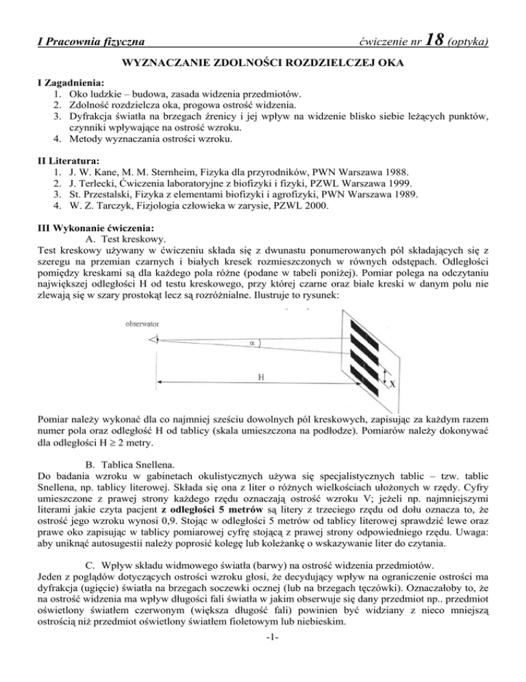 18-O. Wyznaczanie zdolności rozdzielczej oka