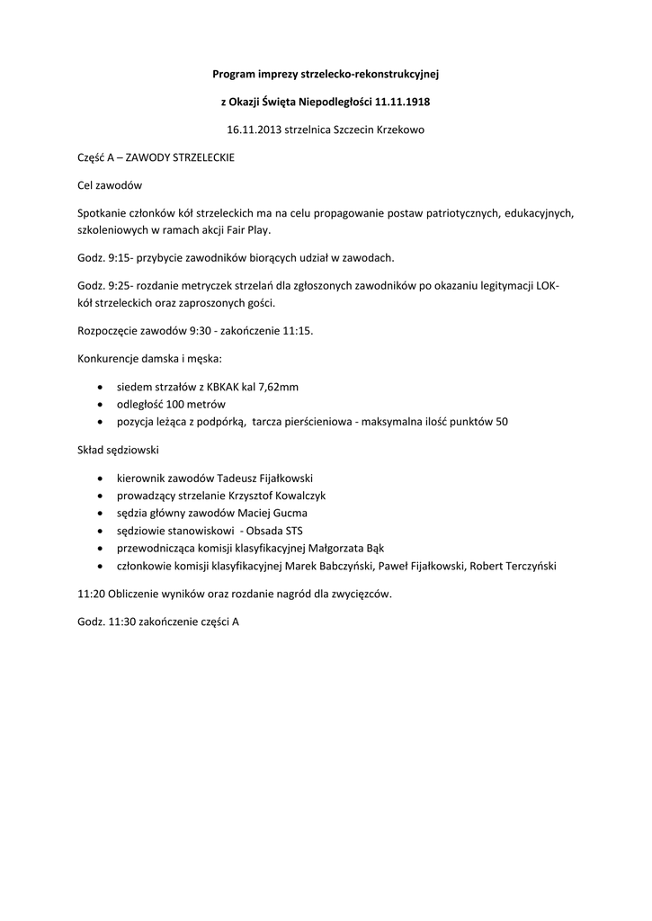 Program imprezy strzelecko-rekonstrukcyjnej z
