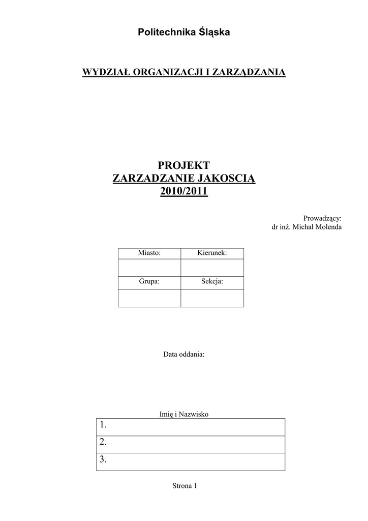 Projekt z Zarzadzania Jakoscią rok akad 2010-2011