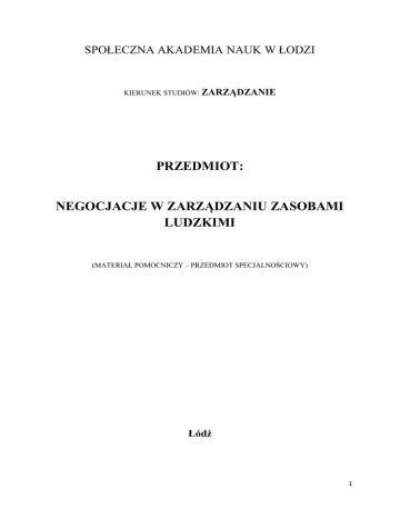PRZEDMIOT: NEGOCJACJE W ZARZĄDZANIU ZASOBAMI LUDZKIMI