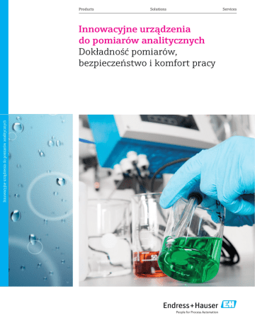 ProductsSolutionsServices Innowacyjne urządzenia do pomiarów analitycznych Innowacyjne urządzenia do pomiarów analitycznych Dokładność pomiarów, bezpieczeństwo i komfort pracy 2 Endress+Hauser Polska Endress+Hauser – zaufany partner Zawsze najwyższa jakość oferowanych produktów, rozwiązań i usług. Jeśli w laboratorium lub procesie używasz urządzeń Endress+Hauser, oznacza to, że wysoko cenisz sobie jakość. Jednocześnie zapewniasz największą dokładność pomiarów podczas monitorowania procesów przemysłowych i dbasz, by produkty finalne spałniały surowe kryteria oceny jakości. Sięgnij po szereg znakomitych rozwiązań sprzyjających zwiększaniu wydajności pracy i jak największemu jej uproszczeniu. Inżynierowie naszych laboratoriów badawczych projektują urządzenia i rozwiązania tak, by uwzględniały wszystkie sugestie i wskazówki użytkowników. Dlatego za każdym razem sięgając po produkty z portfolio Endress+Hauser, masz gwarancję, że powstały one z najwyższą dbałością o przyszły komfort Twojej pracy. W naszej ofercie znajdziesz m.in.: • Mobilne i stacjonarne stacje do poboru prób • Moduł Memolink z oprogramowaniem Memobase Plus do zarządzania punktami pomiarowymi • Przenośny przetwornik Liquiline to Go do zastosowań laboratoryjnych i w terenie • Przenośne przepływomierze ultradźwiękowe Narzędzia do kalibracji: • Roztwory buforowe pH/redoks • Roztwory wzorcowe przewodności Wybierz sprawdzonego i niezawodnego partnera • Najwyższej jakości sprawdzone rozwiązania dla wielu branż przemysłu • Kompleksowa oferta – obejmuje również narzędzia do kalibracji i weryfikacji wskazań przyrządów pomiarowych • Spójność metrologiczna z materiałami referencyjnymi NIST i PTB – potwierdzona wiarygodność buforów • Profesjonalne laboratoria badawcze, gdzie pomysły zamieniane są w rzeczywiste rozwiązania • Optymalna praca urządzeń to zmniejszenie kosztów Dowiedz się więcej: www.pl.endress.com/analiza Innowacyjne urządzenia do pomiarów analitycznych Technologia Memosens Rozwój czujników i przetworników pomiarowych z technologią Memosens. Technologia Memosens już od 10 lat w naszej ofercie. Czy znasz jej zalety? Czujniki wykonane w technologii Memosens są odporne na zakłócenia elektromagnetyczne, wilgoć i korozję, ponieważ wartości pomiarowe są przetwarzane na sygnał cyfrowy i przesyłane do przetwornika za pomocą połączenia bezstykowego. Wbudowana pamięć rejestruje wszystkie zdarzenia, w tym przekroczenia wielkości procesowych. Dzięki temu można kontrolować procesy i kalibrować czujniki zdalnie za pomocą komputera. W miejscu pracy urządzenia wystarczy tylko wymienić wcześniej skalibrowaną elektrodę pH lub inny czujnik. Technologia Memosens gwarantuje dostępność punktów pomiarowych, a Ty przekonasz się jak prosta może być kalibracja urządzeń. Nowa jakość w zakresie pewności i bezpieczeństwa pomiarów W oparciu o technologię Memosens zapewniamy innowacyjne, sprawdzone i skuteczne rozwiązania dla Twoich aplikacji. Wzrost efektywności zarządzania procesami przekłada się wprost na optymalizację kosztów i jakość produktów. Dowiedz się więcej: www.pl.endress.com/memosens Elektrody pH szklane oraz ISFET Przetwornik pomiarowy Liquiline Moduł Memolink z oprogramowaniem Memobase Plus Elektroda przewodności Czujnik wolnego chloru Przetworniki wielokanałowe Liquiline CM44X, stacje poboru prób Liquistation CSF48, sondy przewodności, mętności, azotanów Sonda jonoselektywna, prosty przetwornik Liquiline CM14 Rodzina analizatorów Liquiline System CA80 Rozdzielny przetwornik Liquiline CM44R Przenośny przetwornik Liquiline To Go 3 4 Endress+Hauser Polska Automatyczne stacje poboru prób Stacje Liquistation – proste i bezpieczne pobieranie próbek w komunalnych i przemysłowych oczyszczalniach ścieków. Innowacyjne stacje do poboru próbek – stacjonarna Liquistation CSF48 oraz przenośna Liquiport CSP44 to urządzenia oferujące znacznie więcej niż zwykły pobór próbek cieczy. Dzięki możliwości wykorzystania czujników z technologią Memosens (np. pomiar pH, przewodności elektrolitycznej i wielu innych) możesz stworzyć kompletną stację monitorującą do różnych zastosowań: • Monitoring wód powierzchniowych • Kontrola odpływów z zakładów przemysłowych • Bieżąca weryfikacja procesów technologicznych oczyszczania ścieków Wyjątkowo trwała obudowa jest wykonana ze stali kwasoodpornej V2A i V4A, ale dostępne są również dwie wersje z tworzyw sztucznych z polistyrenu do standardowych zastosowań w oczyszczalniach ścieków oraz ASA – PC (Luran®) do stosowania na zewnątrz. ASA– PC jest tworzywem izolacyjnym o doskonałej odporności na UV, zmienne temperatury, naprężenia mechaniczne i czynniki chemiczne. Dowiedz się więcej: www.pl.endress.com/csp44 www.pl.endress.com/csf48 Stacje do poboru próbek Endress+Hauser posiadają wbudowany, wielokanałowy przetwornik Liquiline, który pozwala na podłączenie dowolnej kombinacji czujników pomiarowych. Dodatkowo dzięki funkcji “hot plug & play” bez konieczności wyłączania urządzenia możesz podłączać kolejne sondy, które są natychmiast gotowe do pracy. Poszukujesz akredytowanych stacji do poboru próbek? Wybierz nowoczesne urządzenia Endress+Hauser z możliwością rejestracji danych pomiarowych i aktualizacji oprogramowania. Nowa rodzina zaawansowanych stacji do poboru próbek Głównym założeniem nowej platformy analitycznej jest ujednolicenie obsługi i komponentów. Stację do poboru próbek można rozbudować do wieloparametrowej stacji pomiarowej bez potrzeby stosowania dodatkowych przetworników pomiarowych. W łatwy sposób dodawaj kolejne wejścia dla czujników Memosens dzięki modułowej konstrukcji i zastosowaniu technologii hot plug & play. Nowe czujniki są wykrywane automatycznie i możesz je łatwo skonfigurować do pracy. Po raz