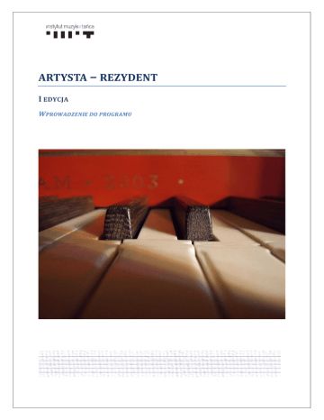 ARTYSTA – REZYDENT I EDYCJA WPROWADZENIE DO PROGRAMU Idea i cele programu Program „Artysta – rezydent” powstał, aby wspierać młodych polskich artystówwykonawców oraz zachęcić polskie zespoły oraz instytucje kultury do podejmowania z nimi współpracy. Główne cele programu to promocja polskich wykonawców, ułatwienie im debiutu oraz zachęcenie instytucji i zespołów do podejmowania współpracy z młodymi artystami, a także promocja polskiej twórczości kompozytorskiej. Podstawowe informacje o programie Dla kogo? Program skierowany jest do młodych artystów-wykonawców (do 35. roku życia), potencjalnych rezydentów: – instrumentalistów, śpiewaków, a także zespołów (do 9 osób, instrumentalnych, wokalnych lub mieszanych) prezentujących różnorodne formacje stylistyczne. Limit wieku dotyczy wszystkich członków zespołu. Obligatoryjnie każdy artysta uczestniczący w programie powinien legitymować się dyplomem ukończenia studiów magisterskich wyższej uczelni muzycznej. Z drugiej strony, program skierowany jest do polskich muzycznych instytucji kultury – instytucji artystycznych oraz innych, które prowadzą stałą działalność koncertową we własnej sali koncertowej, a także do zespołów, które prowadzą regularną działalność koncertową. Organizatorami rezydencji mogą być więc zarówno instytucje działające na podstawie Ustawy o organizowaniu i prowadzeniu działalności kulturalnej, jak i zespoły prowadzące działalność na podstawie Ustawy o fundacjach lub Ustawy o stowarzyszeniach, a także inne instytucje kultury prowadzące stałą działalność koncertową we własnej sali koncertowej (w tym zespoły Polskiego Radia). Przy poszukiwaniu partnerów rezydencji warto wiedzieć, że w Polsce stałą działalność artystyczną prowadzi ponad 40 orkiestr od filharmonii poprzez zespoły radiowe, orkiestry kameralne i smyczkowe po orkiestry młodzieżowe, oraz 21 teatrów operowych i muzycznych. Coraz większą grupę stanowią również zespoły działające przy fundacjach i stowarzyszeniach, oraz utrzymujące się ze środków niepublicznych. Każdy z tych zespołów może być potencjalnym partnerem w projekcie rezydencji. Listę polskich orkiestr można znaleźć na stronach Polskiego Centrum Informacji Muzycznej, a szczegółowe informacje na stronach internetowych instytucji. Informacje o zespołach opublikowane zostały także przez Instytut w Raporcie o stanie muzyki polskiej, który jest dostępny w wersji elektronicznej na stronie internetowej IMIT w zakładce „materiały”. Zasady rezydencji W priorytecie I (rezydencje solistów oraz zespołów w filharmoniach, orkiestrach symfonicznych lub kameralnych i innych instytucjach lub zespołach prowadzących regularną działalność koncertową) program polega na występie solisty lub zespołu w co najmniej trzech koncertach w sezonie artystycznym instytucji z tym, że co najmniej dwa koncerty muszą być koncertami abonamentowymi lub innymi koncertami ze stałej działalności statutowej instytucji (np. cykle koncertowe, festiwale). Odpowiednio, w przypadku innej instytucji kultury prowadzącej stałą działalność koncertową we własnej sali koncertowej, lub zespołu prowadzącego regularną działalność artystyczną, muszą to być co najmniej trzy koncerty w okresie odpowiadającym sezonowi artystycznemu. Instytucja organizująca rezydencję przedstawia terminarz i repertuar co najmniej trzech koncertów z udziałem solisty lub zespołu, przy czym w ramach rezydencji możliwa jest organizacja różnych form koncertów – np. recitali solowych, koncertów kameralnych, edukacyjnych, oratoryjno-kantatowych, symfonicznych. Warunkiem przystąpienia do programu jest włączenie do programu jednego z utworów polskiej muzyki współczesnej, powstałych w wyniku realizacji priorytetu „Zamówienia kompozytorskie”, program MKiDN „Kolekcje”, lub jednego z utworów zamówionych i prawykonanych w ramach programu IMiT „Kompozytor – rezydent” – w wykonaniu solisty lub zespołu objętego rezydencją. Tylko w uzasadnionych przypadkach (np. brak utworu na daną obsadę wykonawczą, formacja stylistyczna zespołu) można odstąpić od tego wymogu, w zamian prezentujący jeden program koncertowy rezydencji w całości wypełniony muzyką polską. W priorytecie II (rezydencje solistów-śpiewaków w teatrach operowych i muzycznych) program polega na czynnym udziale solisty w przygotowaniach co najmniej dwóch premier lub dwóch wznowień (lub jednej premiery i jednego wznowienia) dzieł scenicznych w teatrach operowych i muzycznych (z gatunków: opera, operetka, musical, przedstawienie dla dzieci). Solista powinien ramach rezydencji wystąpić w co najmniej trzech spektaklach w każdym z przygotowywanych tytułów. Instytucja organizująca rezydencję przedstawia plan rezydencji, uwzględniający co najmniej dwie premiery lub wznowienia (lub jedną premierę i jedno wznowienie) wraz z deklaracją terminów, dyrygentów, reżyserów spektakli oraz liczby spektakli z udziałem solisty. Przedstawia także opis zadań solisty, umożliwiających mu czynny udział w przygotowaniu produkcji scenicznych objętych rezydencją. Warunkiem przystąpienia do programu jest uwzględnienie w programie rezydencji co najmniej jednego dzieła scenicznego muzyki polskiej, wykonanego w całości i w formie scenicznej. Materiały nutowe do utworów powstałych w ramach „Zamówień kompozytorskich” są udostępnione do pobrania na stronie internetowej Instytutu Muzyki i Tańca. Możliwość bezpłatnego wykorzystania materiałów nutowych tych utworów do publicznego wykonania utworu nie zwalnia instytucji od obowiązku uiszczenia opłat przysługujących twórcom z tytułu majątkowych praw autorskich, wnoszonych za pośrednictwem Stowarzyszenia Autorów ZAiKS. W sprawie materiałów nutowych utworów skomponowanych w ramach programu „Kompozytor – rezydent” polecamy bezpośred